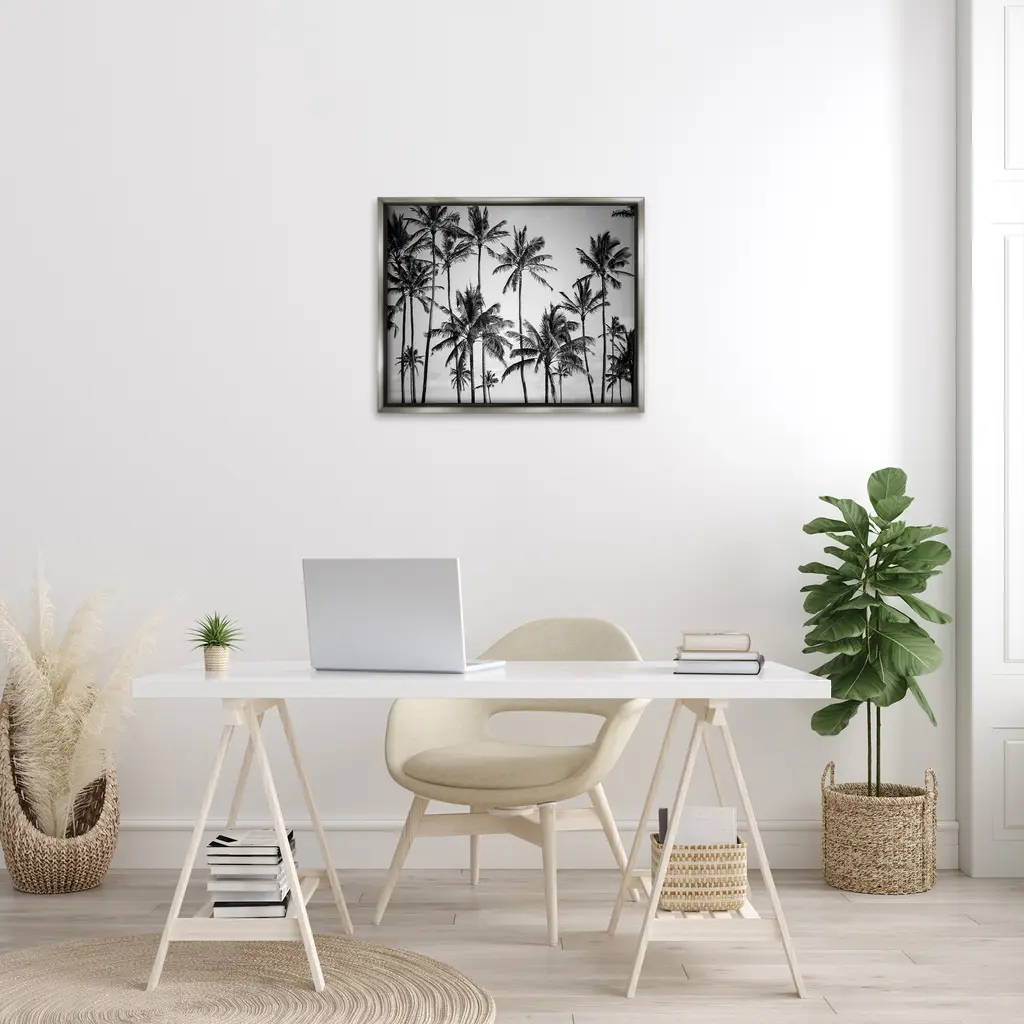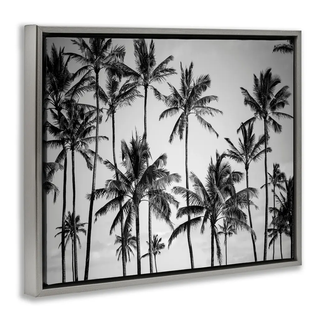 Stupell Palm Trees Skyline Black And White Photography Floater Frame - 31 X 25 - Grey