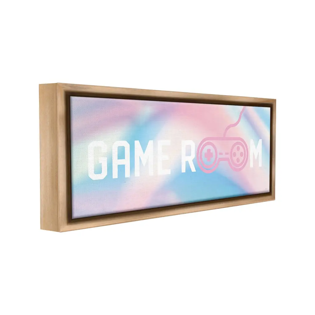 Elevate your home or office to the next level with Stupell Framed Floating Canvas Wall Art. Our premium hand-stretched canvas is mounted securely into a sturdy lightweight frame. The museum-style gap between the wrapped canvas and the box frame gives the illusion of floating artwork. Stupell Wall Art is made in the USA.Features: Dimensions: 25 x 1.7 x 11 Frame, 24 x 1.5 x 10 Canvas ArtFloating Frame Canvas Products are available in sizes 25"x11" and 31"x14". All Floating Frame Canvas Products have a 1.7" Depth.Wall Art is Ready to Hang with Hardware Free Hanging. No Installation required. For Easy Set Up Lean or Layer Artwork on Shelf or Against Wall. Artwork is Permently Fixed into the Frame.Our elevated 1.7" Thick Floating Frame is the perfect complement to our canvas style Wall Art. We use only the highest quality inks in house with industry leading printing solutions. Canvas is hand stretched over a durable wood foundation and then mounted securly into a Modern Box Frame. Made in the USA.Artwork Relates To: Gaming, Gamer, Video Game, Controller, Pastel, Abstract, Game RoomDesign by Lux + Me Designs