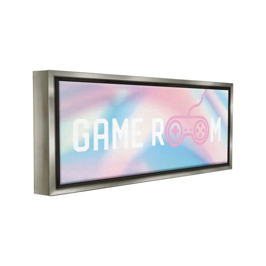 Elevate your home or office to the next level with Stupell Framed Floating Canvas Wall Art. Our premium hand-stretched canvas is mounted securely into a sturdy lightweight frame. The museum-style gap between the wrapped canvas and the box frame gives the illusion of floating artwork. Stupell Wall Art is made in the USA.Features: Dimensions: 25 x 1.7 x 11 Frame, 24 x 1.5 x 10 Canvas ArtFloating Frame Canvas Products are available in sizes 25"x11" and 31"x14". All Floating Frame Canvas Products have a 1.7" Depth.Wall Art is Ready to Hang with Hardware Free Hanging. No Installation required. For Easy Set Up Lean or Layer Artwork on Shelf or Against Wall. Artwork is Permently Fixed into the Frame.Our elevated 1.7" Thick Floating Frame is the perfect complement to our canvas style Wall Art. We use only the highest quality inks in house with industry leading printing solutions. Canvas is hand stretched over a durable wood foundation and then mounted securly into a Modern Box Frame. Made in the USA.Artwork Relates To: Gaming, Gamer, Video Game, Controller, Pastel, Abstract, Game RoomDesign by Lux + Me Designs