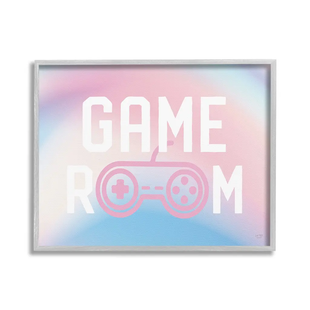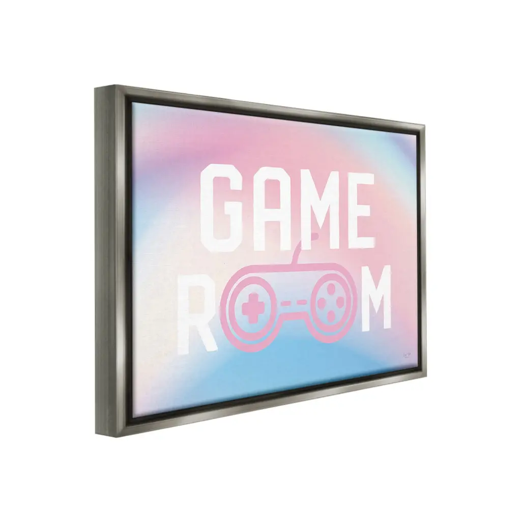 Elevate your home or office to the next level with Stupell Framed Floating Canvas Wall Art. Our premium hand-stretched canvas is mounted securely into a sturdy lightweight frame. The museum-style gap between the wrapped canvas and the box frame gives the illusion of floating artwork. Stupell Wall Art is made in the USA.Features: Dimensions: 21 x 1.7 x 17 Frame, 20 x 1.5 x 16 Canvas ArtFloating Frame Canvas Products are available in sizes 21"x17" and 31"x25". All Floating Frame Canvas Products have a 1.7" Depth.Wall Art is Ready to Hang with Hardware Free Hanging. No Installation required. For Easy Set Up Lean or Layer Artwork on Shelf or Against Wall. Artwork is Permently Fixed into the Frame.Our elevated 1.7" Thick Floating Frame is the perfect complement to our canvas style Wall Art. We use only the highest quality inks in house with industry leading printing solutions. Canvas is hand stretched over a durable wood foundation and then mounted securly into a Modern Box Frame. Made in the USA.Artwork Relates To: Gaming, Gamer, Video Game, Controller, Pastel, Abstract, Game RoomDesign by Lux + Me Designs