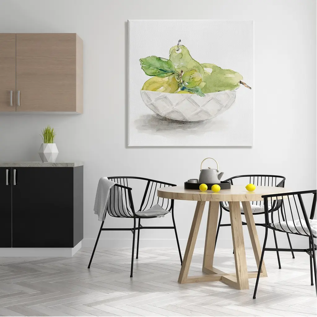 We create our stretched canvas to the highest standards. Using only the highest quality inks and canvas on Mimaki printers, we hand-cut and stretch each piece over a 1.5-inch thick wooden frame for hanging. As a result, the art comes ready to hang on the sturdy ledge with no installation required. Stupell Wall Art is made in the USA.Features: Dimensions: 17 x 1.5 x 17 InchesStretched Canvas Sizes Include Standard: 17 x 1.5 x 17 Large: 24 x 1.5 x 24 X-Large: 30 x 1.5 x 30 Oversized: 36 x 1.5 x 36Wall Art is Ready to Hang with Hardware Free Hanging. No installation required. For Easy Set Up Lean or Layer Artwork on Shelf or Against Wall.Our stretched canvas is created with the highest standards. We use only the highest quality inks and canvas on our in house Mimaki printers, and then hand cut and stretch each piece over a 1.5 inch thick wooden frame for hanging. Made In USA.Artwork Relates To: Painting, Flower, Food, Fruit, Produce, Bowl, PearDesign by Lanie Loreth