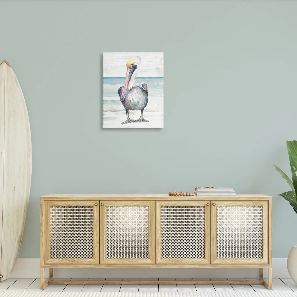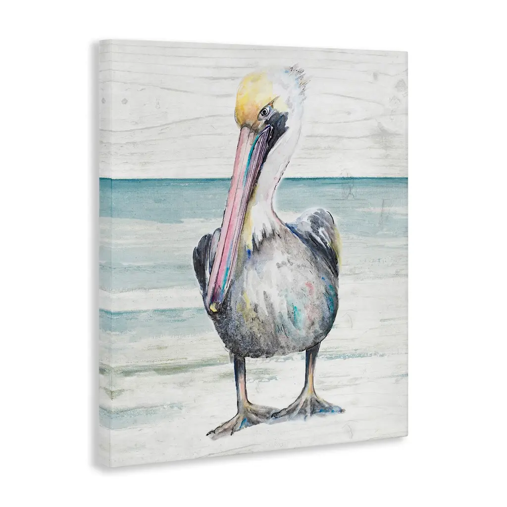 Proudly made in the USA, Our stretched canvas is created with the highest standards. We use only the highest quality inks and canvas on our in house Mimaki printers, and then hand cut and stretch each piece over a 1.5 inch thick wooden frame for hanging. The art comes ready to hang with no installation required. Not to mention, at this size, it is sure to be the focal point of any room!Features: Wall Art is Ready to Hang - No Installation or Hardware Needed. For Easy Set Up Lean or Layer Artwork on Shelf or Against Wall.Our stretched canvas is created with the highest standards. We use only the highest quality inks and canvas on our in house Mimaki printers, and then hand cut and stretch each piece over a 1.5 inch thick wooden frame for hanging. Made In USA.Artwork Relates To: Bird; Animal; Pelican; BeakDesign by Patricia Pinto