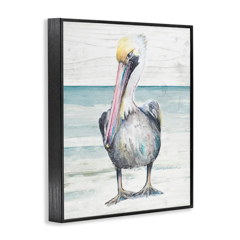 Our Framed Giclee Wall Art adds a touch of class to any space in your home or office. Frames are available in three alluring styles: black, gray farmhouse and white. Our textured artwork will add more depth and dimension to any space. Each piece is mounted with a 1.5 inch thick wood grain frame that is ready to hang! Looking for a statement piece? We have oversized artwork available.Features: Wall Art is Ready to Hang - No Installation or Hardware Needed. For Easy Set Up Lean or Layer Artwork on Shelf or Against Wall.Our giclee prints are carefully mounted on a durable MDF backing, and then perfectly finished in a 1.5 inch thick woodgrain frame. Mounted frame colors include black, gray farmhouse and white. Made In USA.Artwork Relates To: Bird; Animal; Pelican; BeakDesign by Patricia Pinto