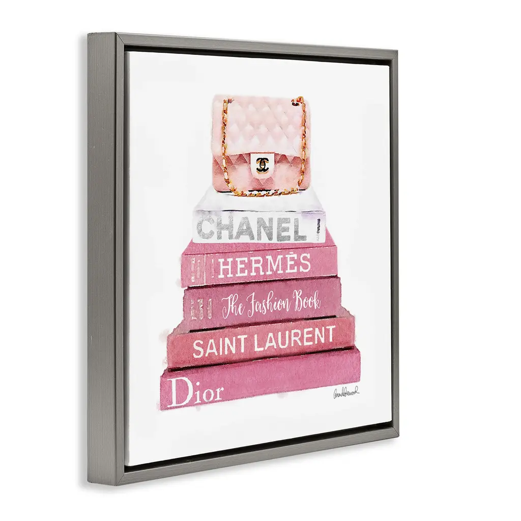 Elevate your home or office to the next level with Stupell Framed Floating Canvas Wall Art. Our premium hand-stretched canvas is mounted securely into a sturdy lightweight frame. The museum-style gap between the wrapped canvas and the box frame gives the illusion of floating artwork. Stupell Wall Art is made in the USA.Features: Dimensions: 18 x 1.7 x 18 Frame, 17 x 1.5 x 17 Canvas ArtFloating Frame Canvas Products are available in sizes 18"x18" and 25"x25". All Floating Frame Canvas Products have a 1.7" Depth.Wall Art is Ready to Hang with Hardware Free Hanging. No Installation required. For Easy Set Up Lean or Layer Artwork on Shelf or Against Wall. Artwork is Permently Fixed into the Frame.Our elevated 1.7" Thick Floating Frame is the perfect complement to our canvas style Wall Art. We use only the highest quality inks in house with industry leading printing solutions. Canvas is hand stretched over a durable wood foundation and then mounted securly into a Modern Box Frame. Made in the USA.Artwork Relates To: Glam, Fashion, Bookstack, Purse, Pastel, Trendy, ModernDesign by Amanda Greenwood