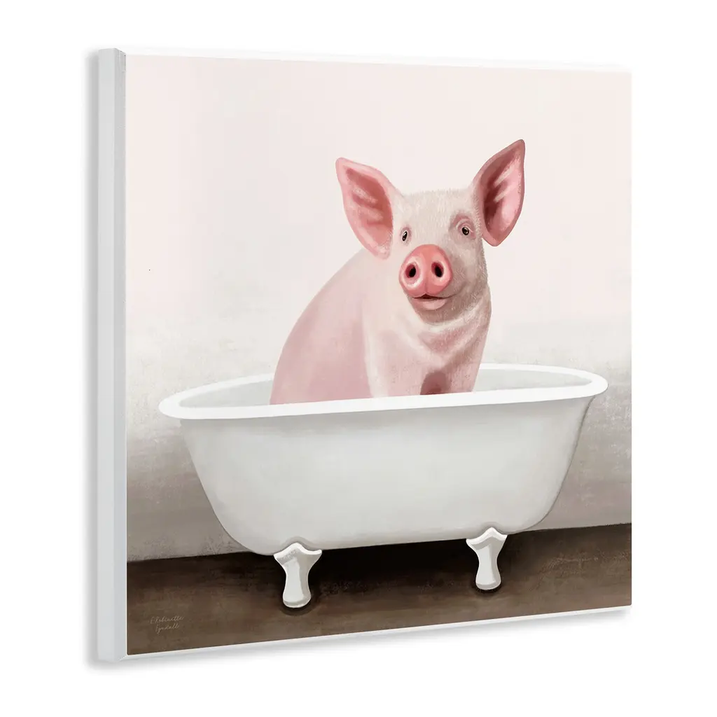 Stupell Pink Farm Pig In Country Bath Tub Wall Plaque Art Design By Elizabeth Tyndall - 12 X 12