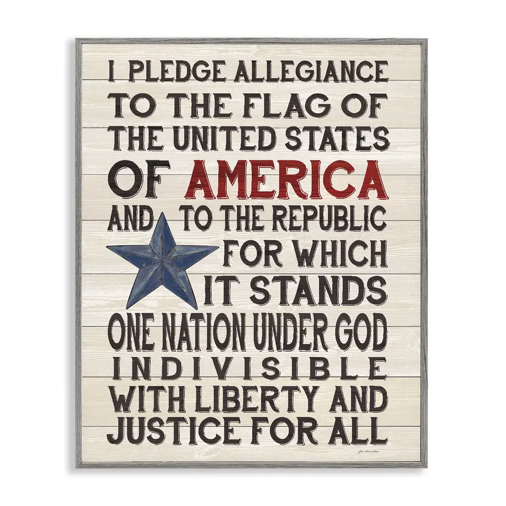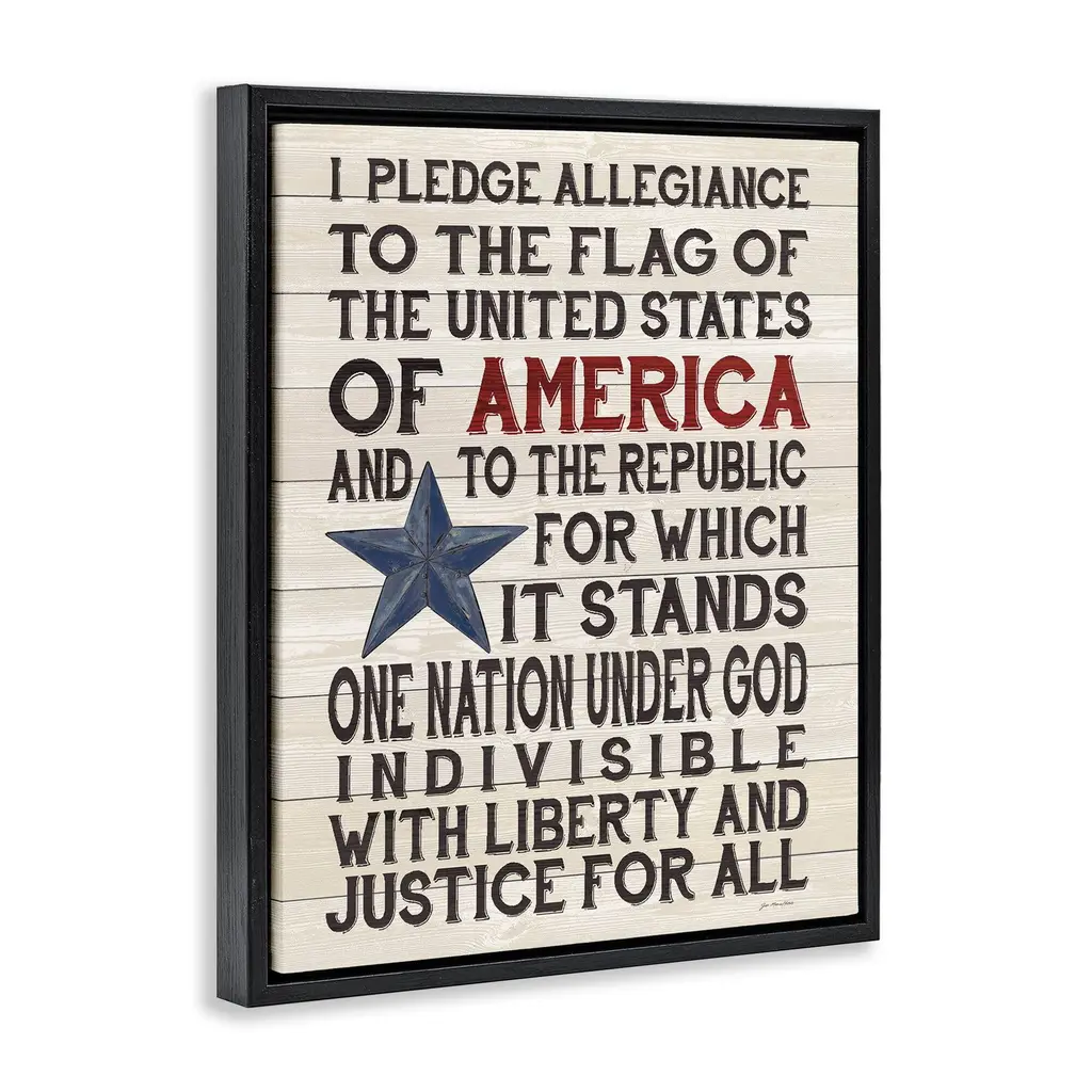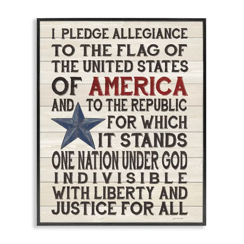 Stupell Pledge Of Allegiance Stars And Stripes Americana Rustic Wood Look Sign Floater Frame - Multi-Color - 25 X 31 - Black