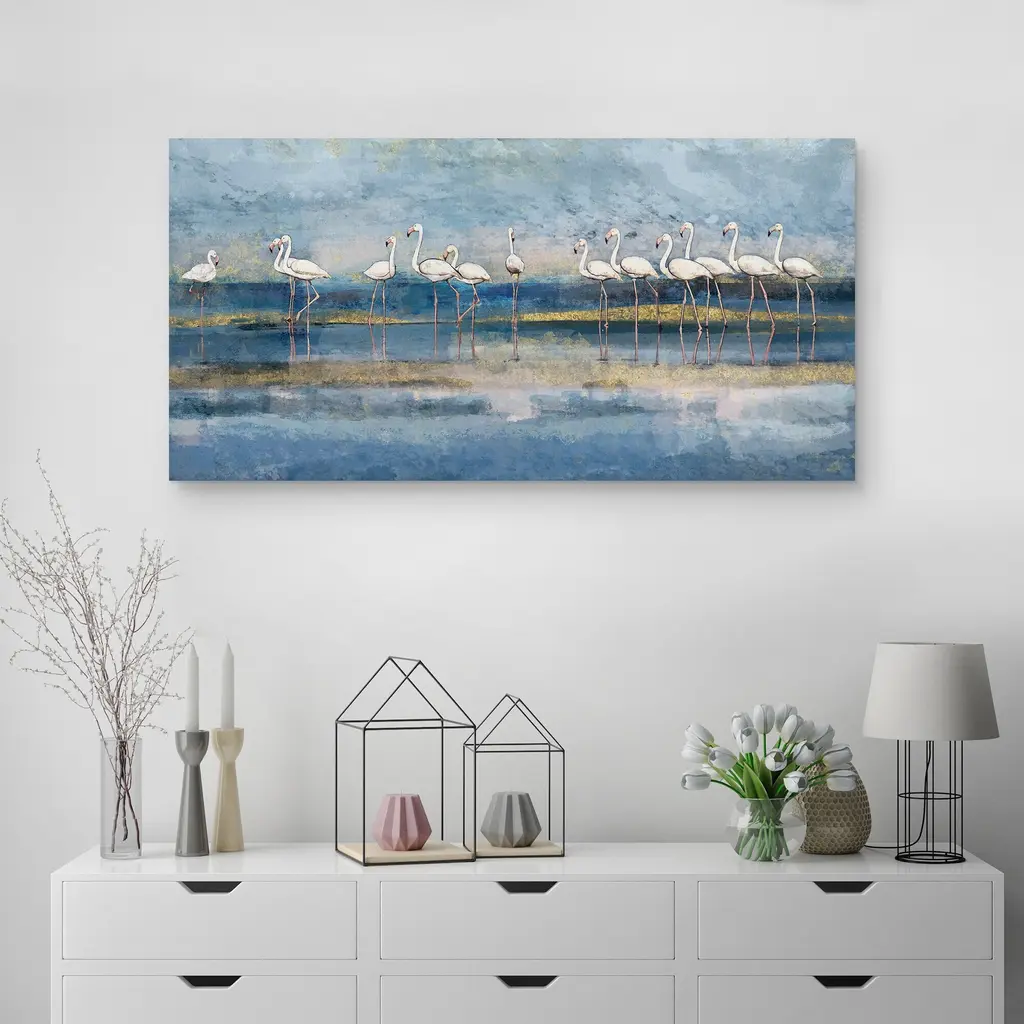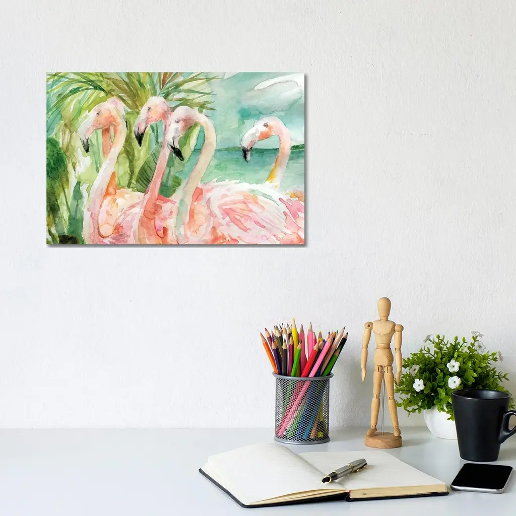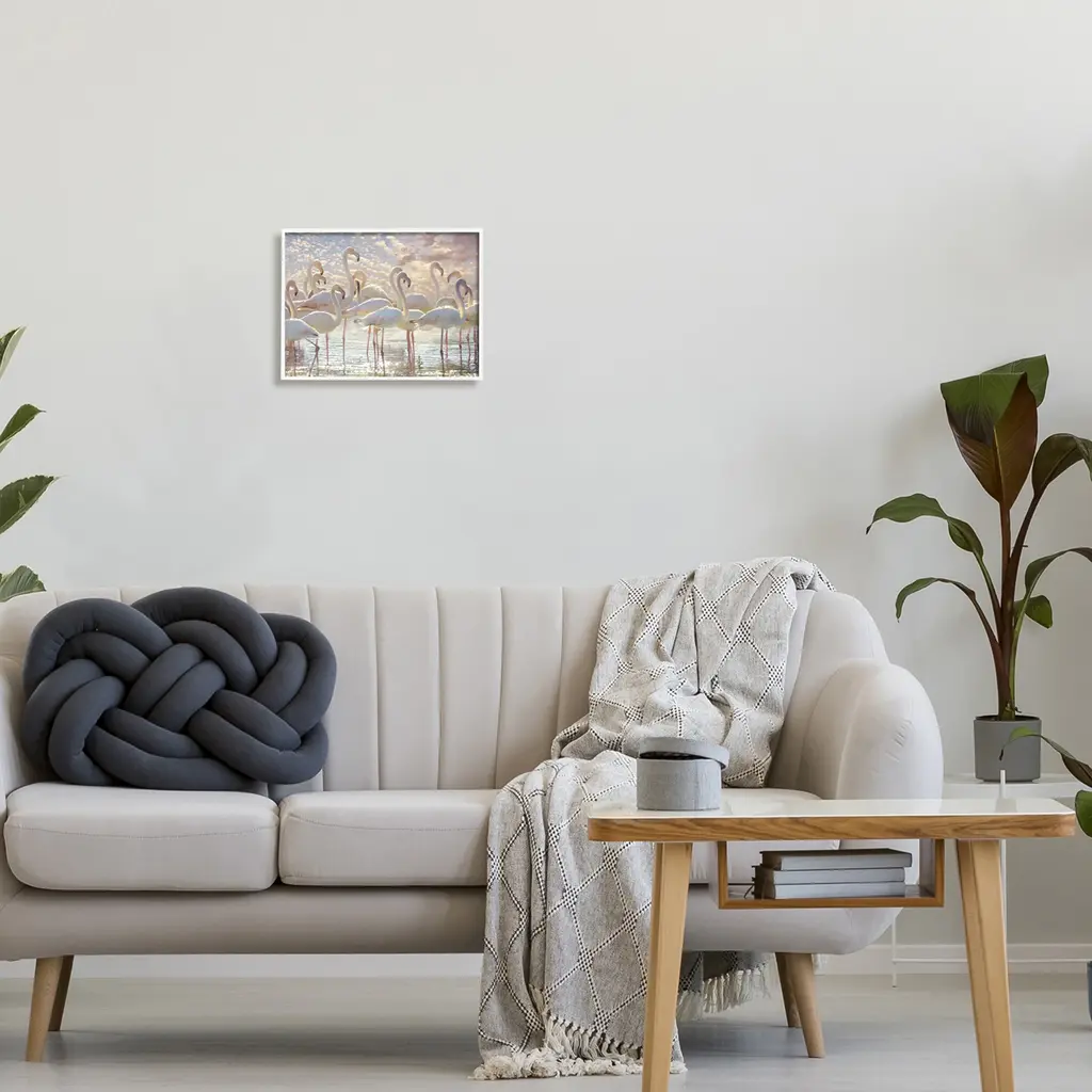 Stupell Pretty Pink White Flamingos Standing Sparkling Water Clouds Framed Wall Art - Multi-Color - 14 X 11 - White