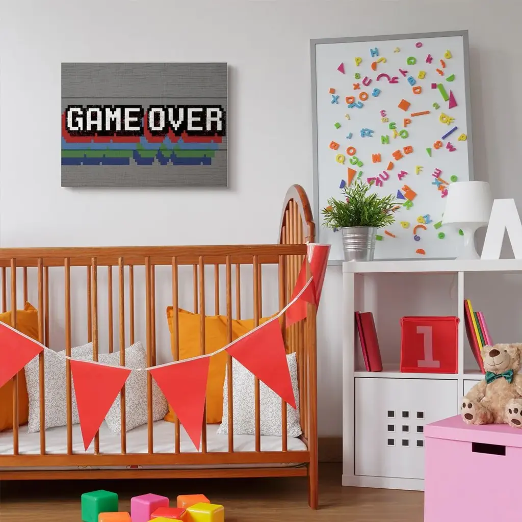 Stupell Retro Game Over Phrase Rustic Video Game Text Canvas Wall Art - Multi-Color - 24 X 30