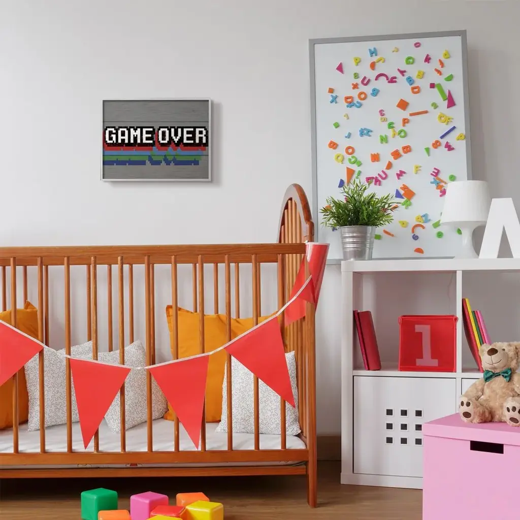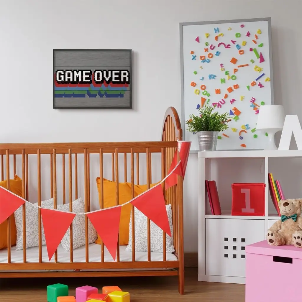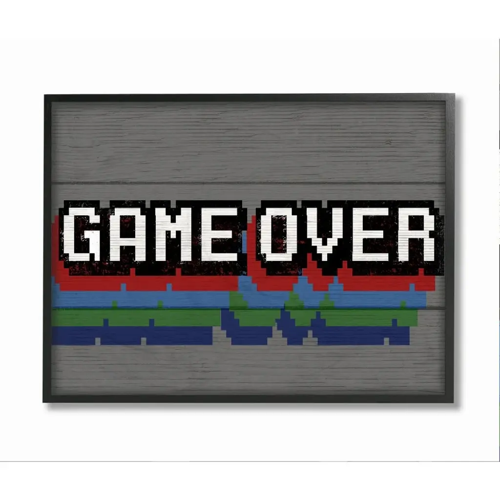 Stupell Retro Game Over Phrase Rustic Video Game Text Framed Wall Art - Grey - 16 X 20 - Black
