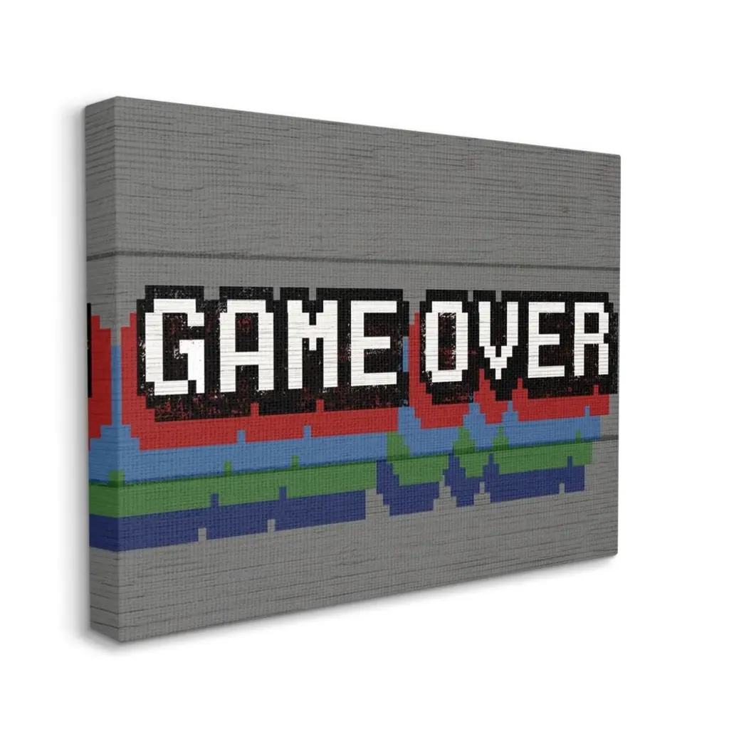 Stupell Retro Game Over Phrase Rustic Video Game Text Framed Wall Art - Grey - 24 X 30 - Black