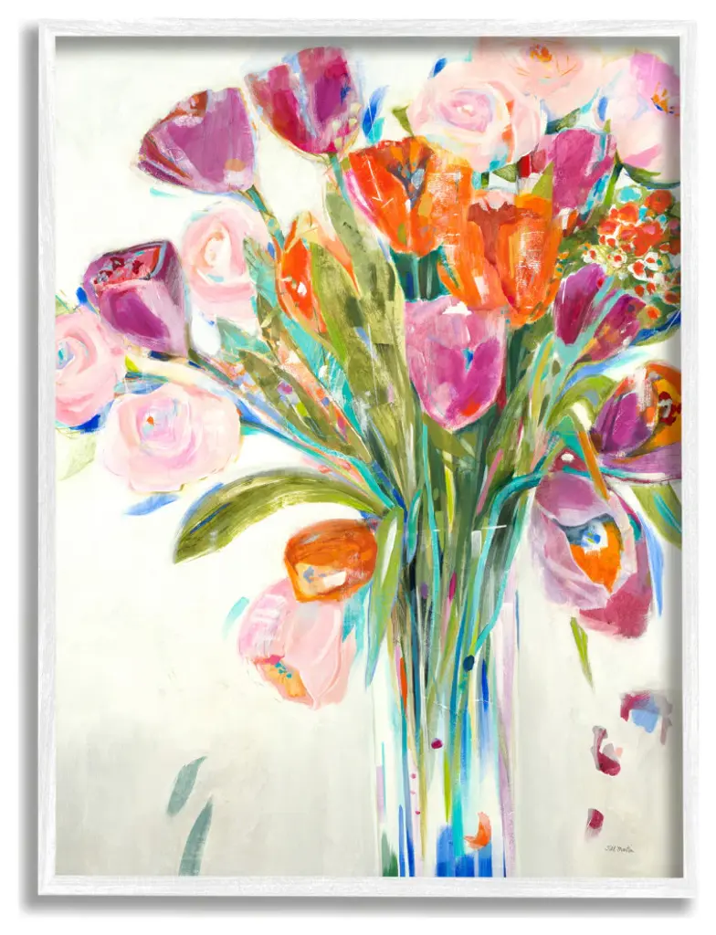 Stupell Rose And Tulip Bouquet Spring Flower Expression Floater Frame - Off-White - 16x20 - Grey