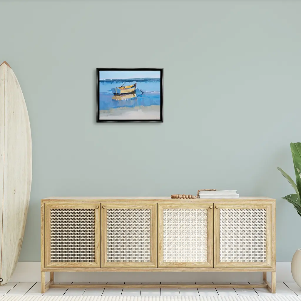 Stupell Row Boat On Blue Coastal Shore Beach Landscape Floater Frame - 16 X 20 - Black