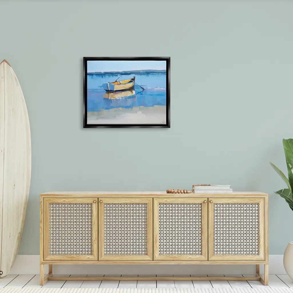 Stupell Row Boat On Blue Coastal Shore Beach Landscape Floater Frame - 24 X 30 - Black