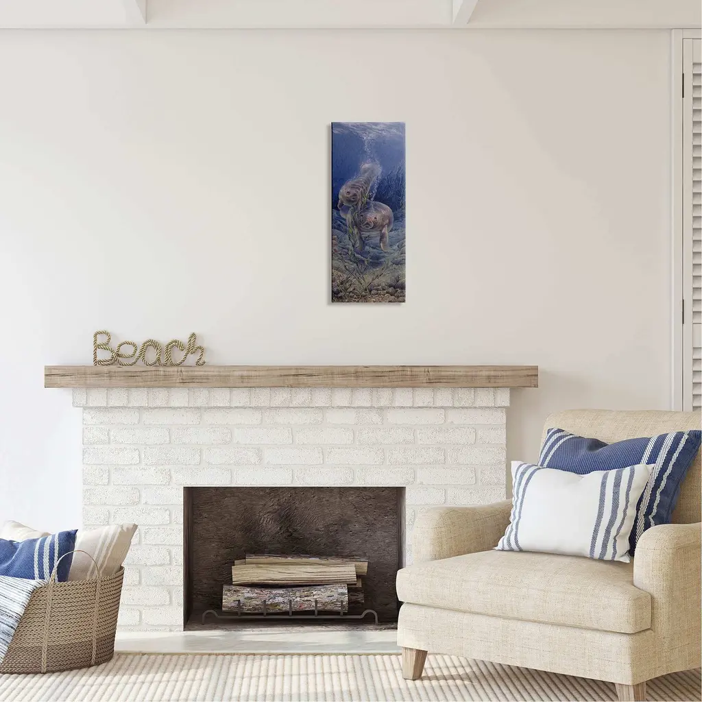 We create our stretched canvas to the highest standards. Using only the highest quality inks and canvas on Mimaki printers, we hand-cut and stretch each piece over a 1.5-inch thick wooden frame for hanging. As a result, the art comes ready to hang on the sturdy ledge with no installation required. Stupell Wall Art is made in the USA.Features: Dimensions: 10 x 1.5 x 24 InchesStretched Canvas Sizes Include Standard: 10 x 1.5 x 24 Large: 13 x 1.5 x 30 X-Large: 17 x 1.5 x 40 Oversized: 20 x 1.5 x 48Wall Art is Ready to Hang - No Installation or Hardware Needed. For Easy Set Up Lean or Layer Artwork on Shelf or Against Wall.Our stretched canvas is created with the highest standards. We use only the highest quality inks and canvas on our in house Mimaki printers, and then hand cut and stretch each piece over a 1.5 inch thick wooden frame for hanging. Made In USA.Artwork Relates To: Animal, Mammal, Manatee, Water, AquaticDesign by Linda Thompson