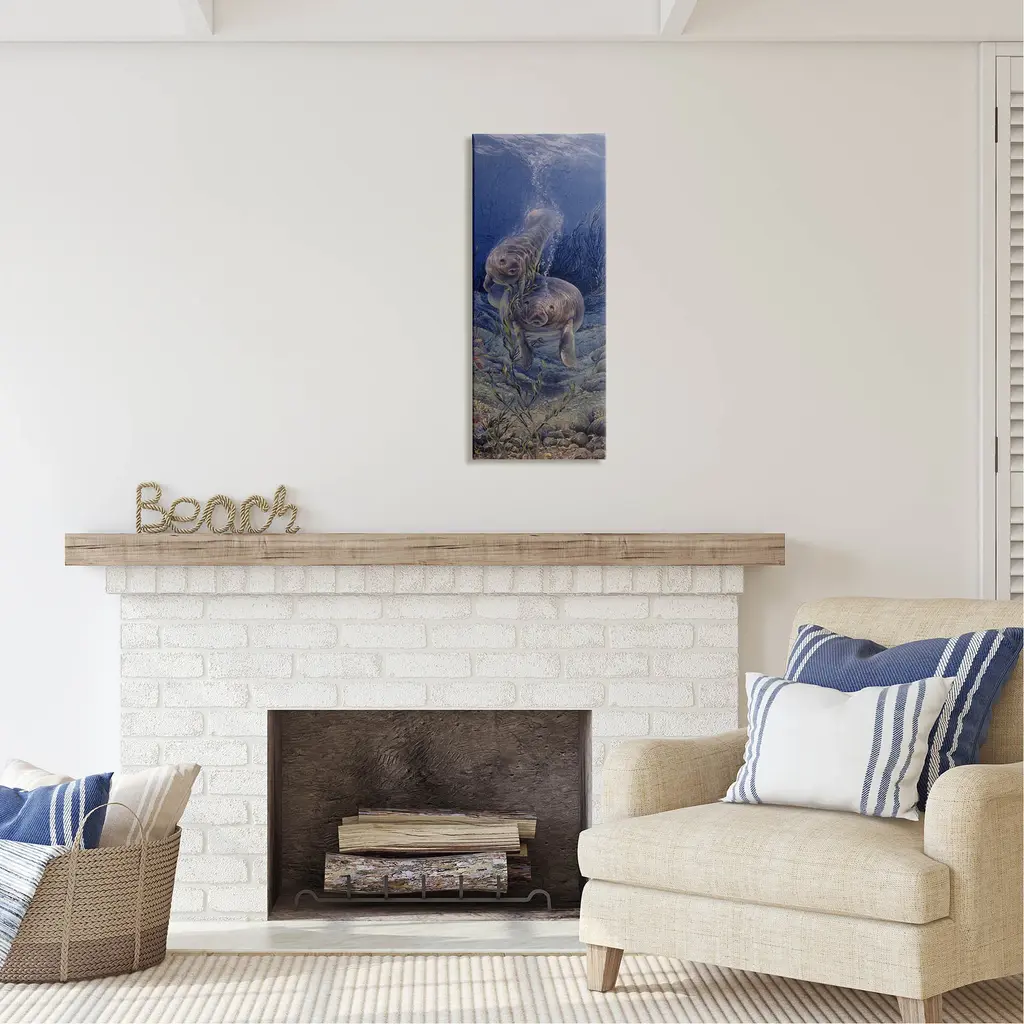 We create our stretched canvas to the highest standards. Using only the highest quality inks and canvas on Mimaki printers, we hand-cut and stretch each piece over a 1.5-inch thick wooden frame for hanging. As a result, the art comes ready to hang on the sturdy ledge with no installation required. Stupell Wall Art is made in the USA.Features: Dimensions: 10 x 1.5 x 24 InchesStretched Canvas Sizes Include Standard: 10 x 1.5 x 24 Large: 13 x 1.5 x 30 X-Large: 17 x 1.5 x 40 Oversized: 20 x 1.5 x 48Wall Art is Ready to Hang - No Installation or Hardware Needed. For Easy Set Up Lean or Layer Artwork on Shelf or Against Wall.Our stretched canvas is created with the highest standards. We use only the highest quality inks and canvas on our in house Mimaki printers, and then hand cut and stretch each piece over a 1.5 inch thick wooden frame for hanging. Made In USA.Artwork Relates To: Animal, Mammal, Manatee, Water, AquaticDesign by Linda Thompson