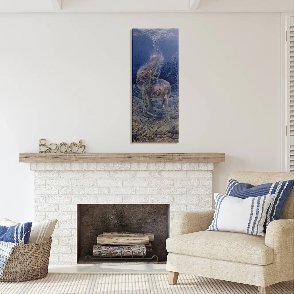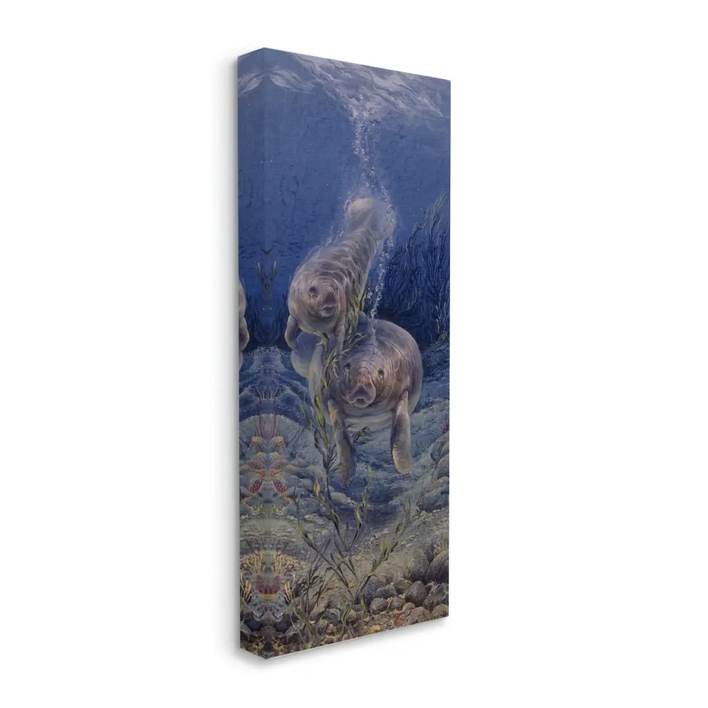 We create our stretched canvas to the highest standards. Using only the highest quality inks and canvas on Mimaki printers, we hand-cut and stretch each piece over a 1.5-inch thick wooden frame for hanging. As a result, the art comes ready to hang on the sturdy ledge with no installation required. Stupell Wall Art is made in the USA.Features: Dimensions: 10 x 1.5 x 24 InchesStretched Canvas Sizes Include Standard: 10 x 1.5 x 24 Large: 13 x 1.5 x 30 X-Large: 17 x 1.5 x 40 Oversized: 20 x 1.5 x 48Wall Art is Ready to Hang - No Installation or Hardware Needed. For Easy Set Up Lean or Layer Artwork on Shelf or Against Wall.Our stretched canvas is created with the highest standards. We use only the highest quality inks and canvas on our in house Mimaki printers, and then hand cut and stretch each piece over a 1.5 inch thick wooden frame for hanging. Made In USA.Artwork Relates To: Animal, Mammal, Manatee, Water, AquaticDesign by Linda Thompson