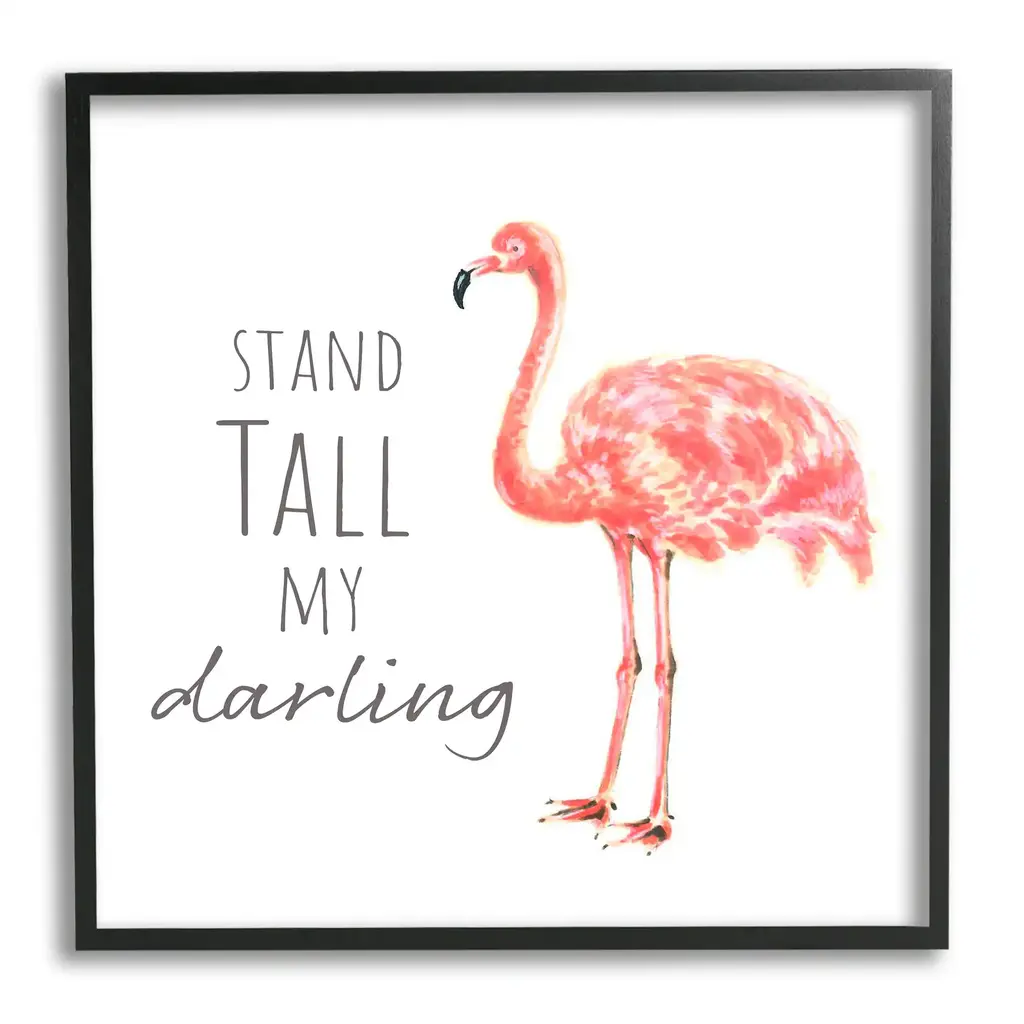 Stupell Stand Tall My Darling Motivational Phrase Pink Flamingo Framed Wall Art - 12 X 12 - Black