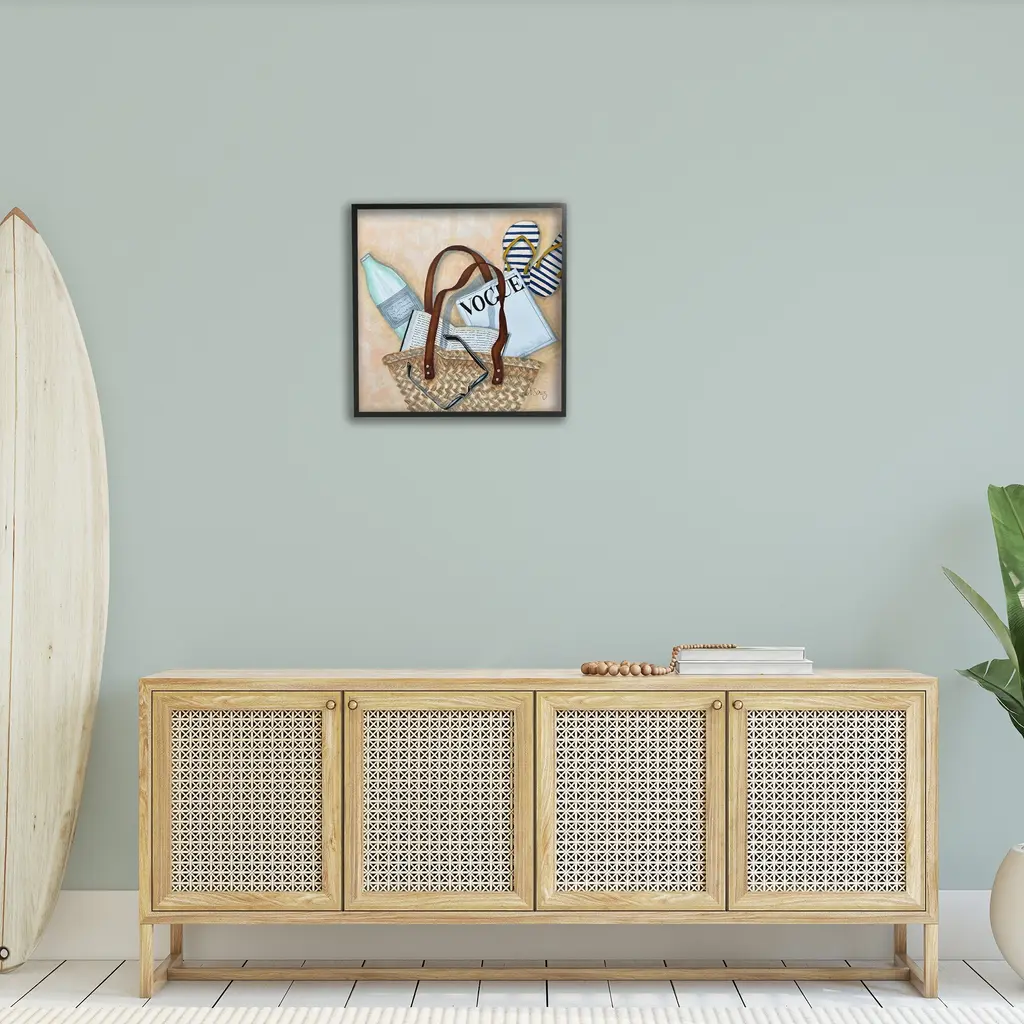 Add dimension to any room with our textured Framed Giclee Artwork. Our framed artwork is securely mounted into a 1.5-inch thick wood grain frame and ready to hang. Frames are available in three alluring styles: black, gray farmhouse and white. In addition, you should check out our oversized options if you want a statement piece. Stupell Wall Art is made in the USA.Features: Dimensions: 12 x 1.5 x 12 FramedFramed Giclee Product Sizes Include 12"x12", 17"x17", and 24"x24". Framed Giclee Products have a 1.5" Depth. Wall Art is Ready to Hang with Hardware Free Hanging. No installation required. For Easy Set Up Lean or Layer Artwork on Shelf or Against Wall.Our giclée prints are carefully mounted on a durable MDF backing, and then perfectly finished in a 1.5 inch thick woodgrain frame. Mounted frame colors include black, gray farmhouse and white. Made In USA.Artwork Relates To: Beach, Summer, Relax, Book, Reading, Flip Flops, Sandals, SunglassesDesign by Ale Saiz Studio