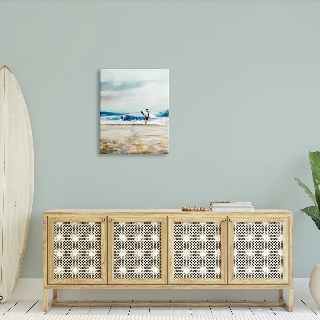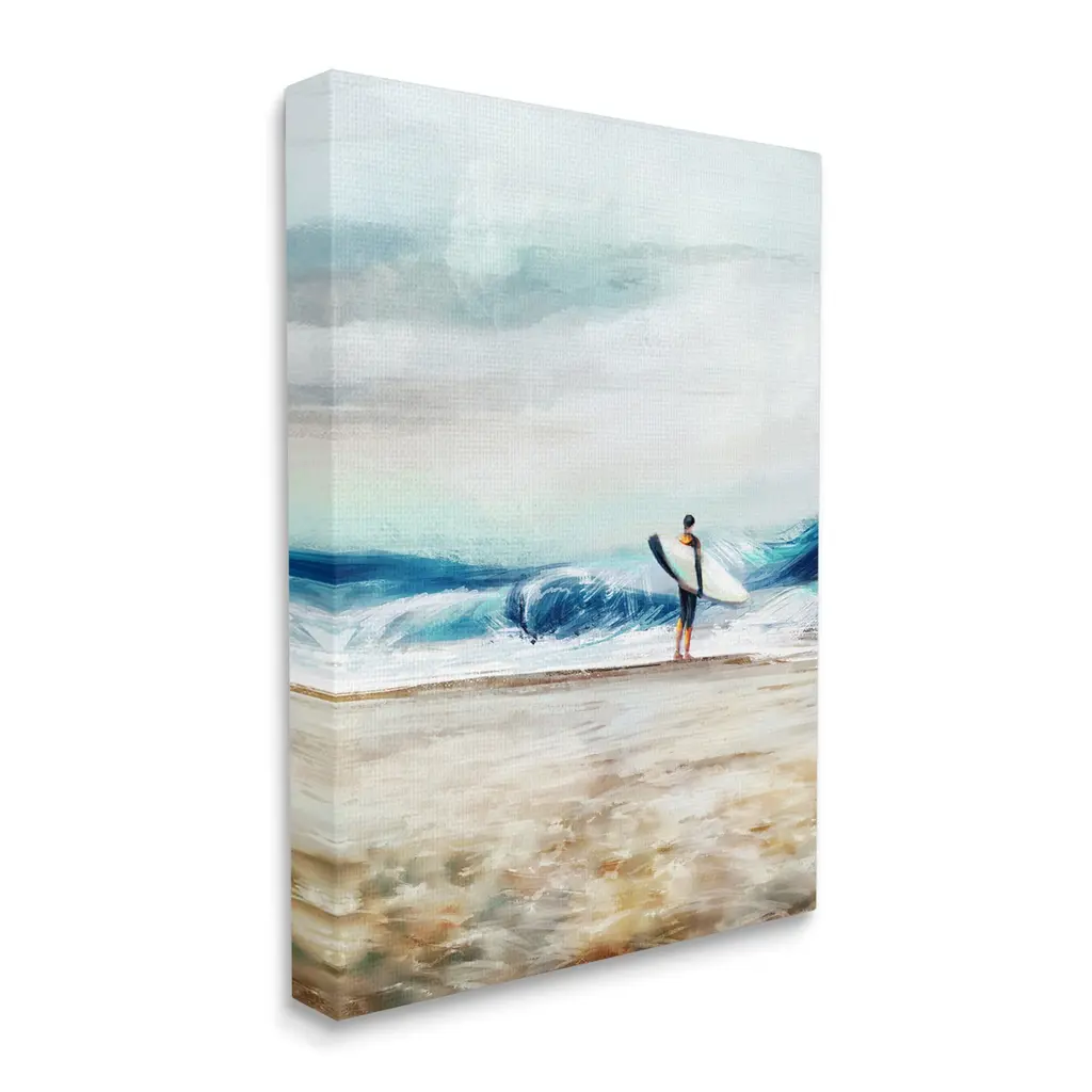 Stupell Surfer Standing Coast Busy Beach Waves Abstract Scene Canvas Wall Art - Blue - 24 X 30