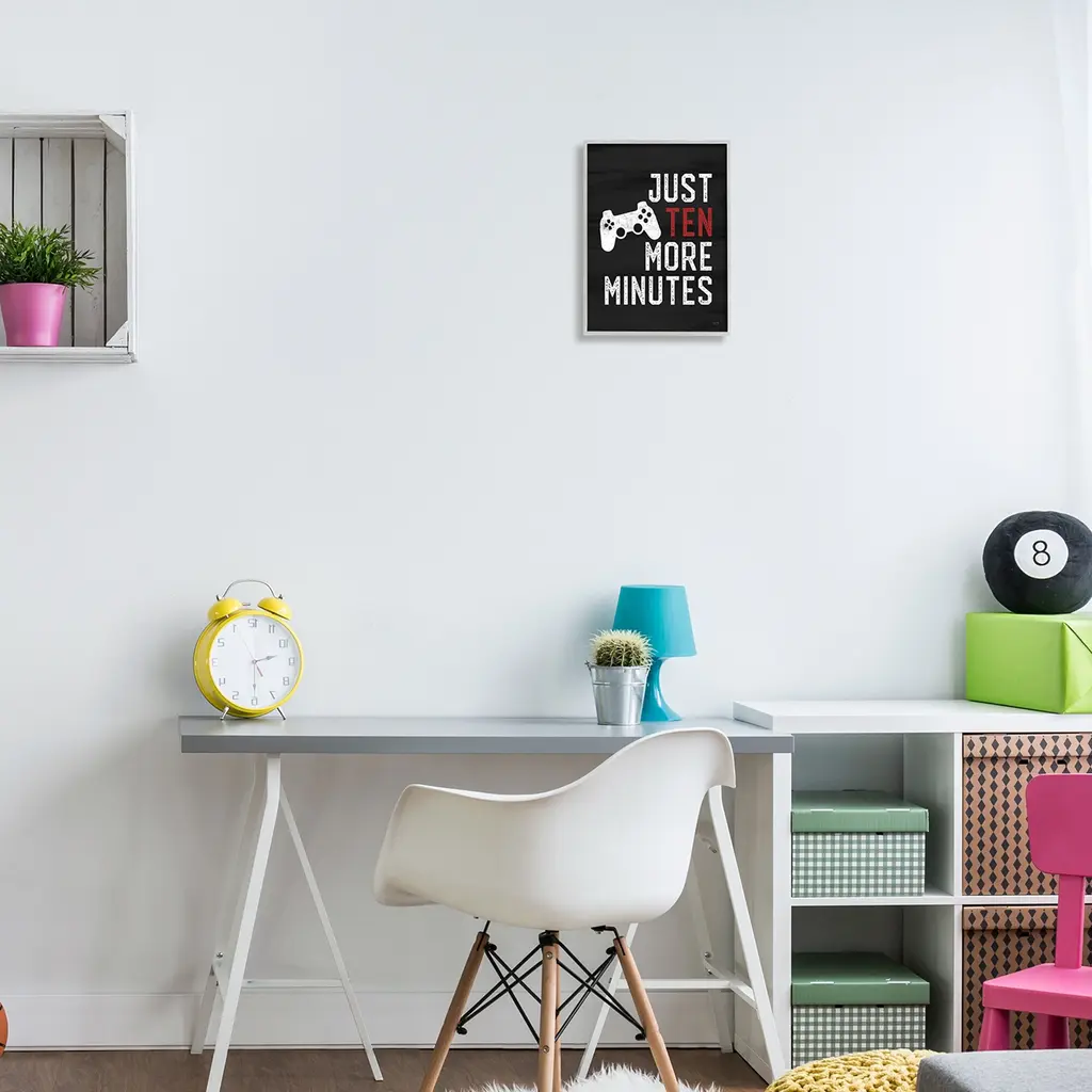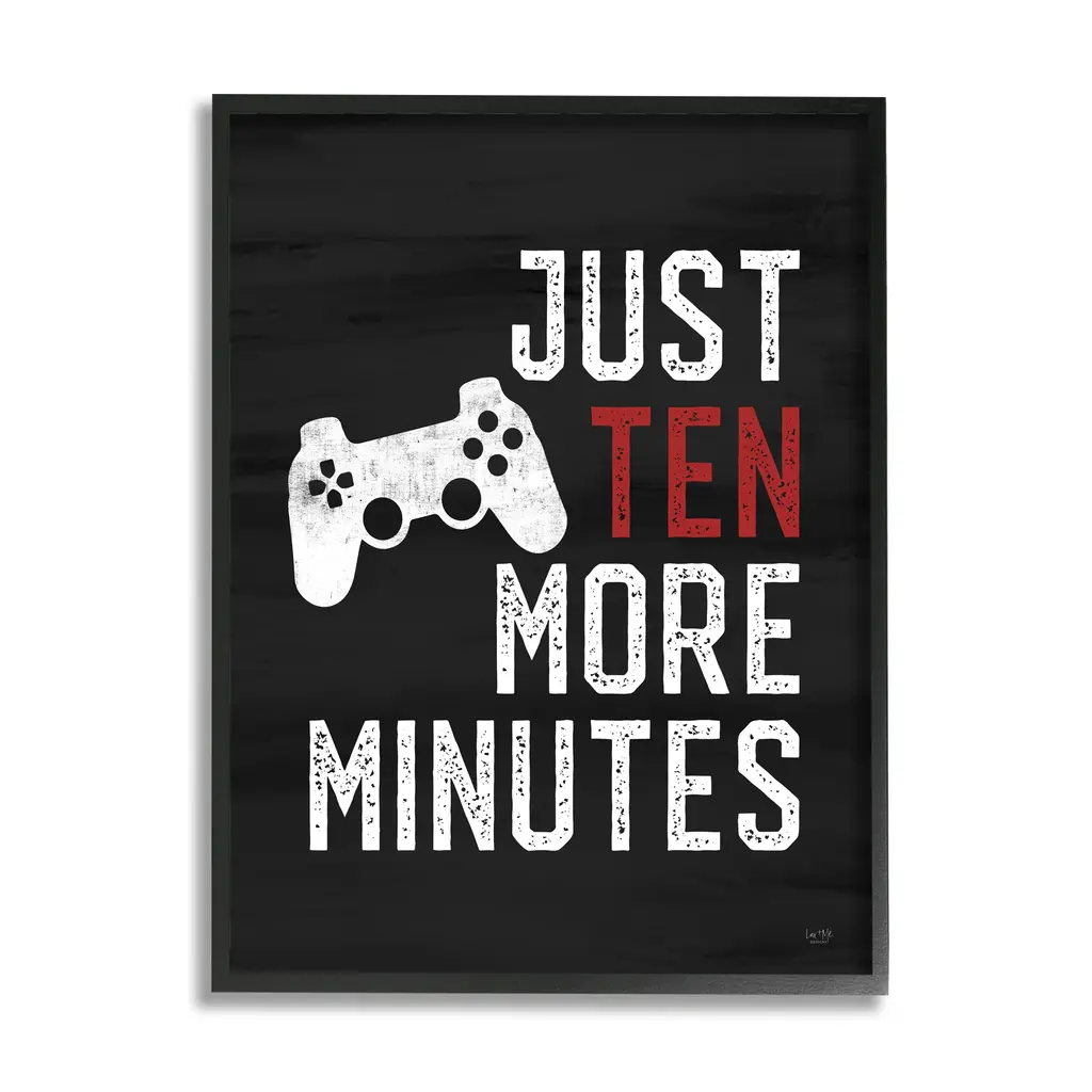Stupell Ten More Minutes Gamer Saying Quote Controller Framed Wall Art - Red - 11 X 14 - Grey