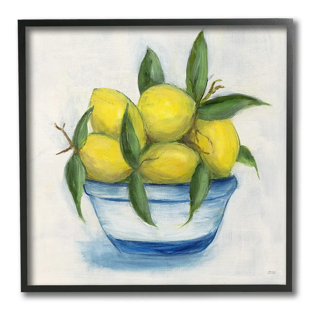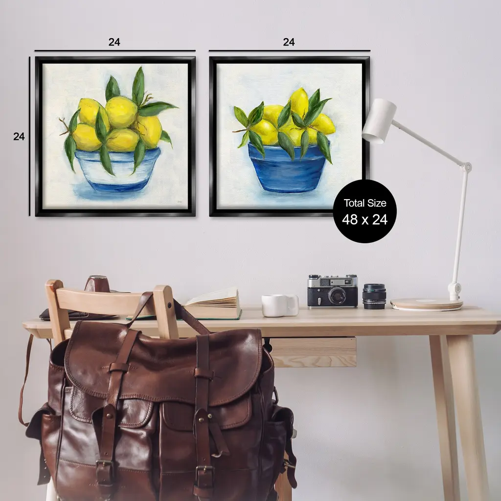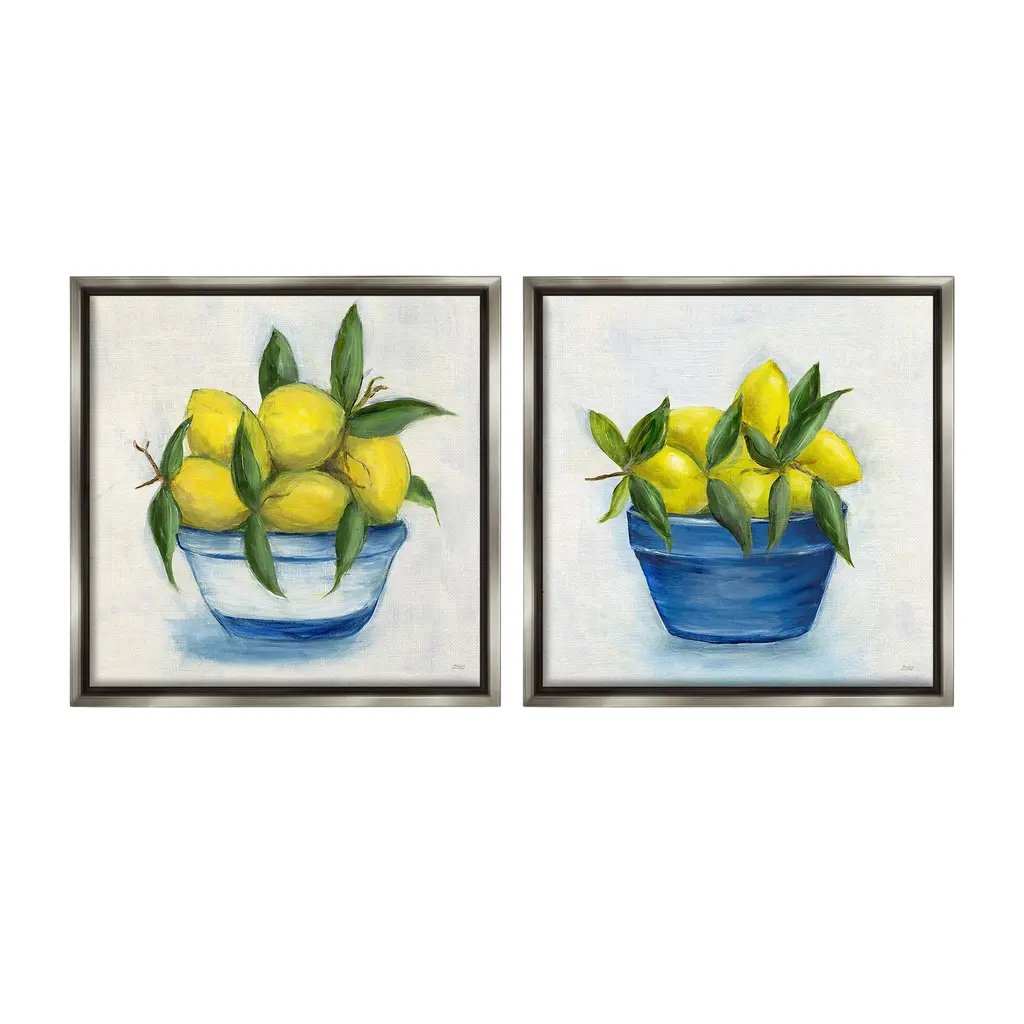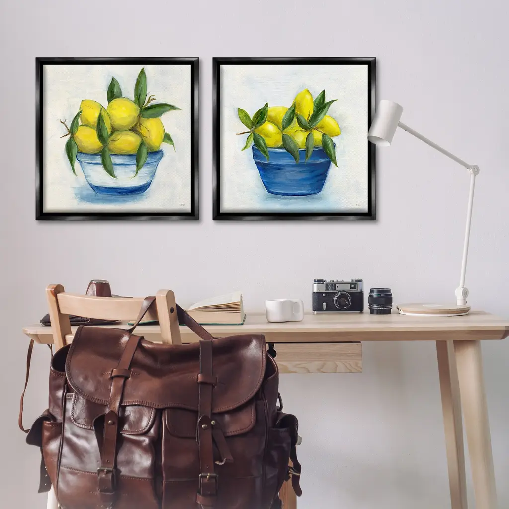 Elevate your home or office to the next level with Stupell Framed Floating Canvas Wall Art. Our premium hand-stretched canvas is mounted securely into a sturdy lightweight frame. The museum-style gap between the wrapped canvas and the box frame gives the illusion of floating artwork. Stupell Wall Art is made in the USA.Features: Dimensions: 2 Piece Set, Each Frame is 18 x 1.7 x 18Two Piece Floating Frame Canvas Products are available as 18"x18" or 25"x25" Panels. All Floating Frame Canvas Products have a 1.7" Depth.Wall Art is Ready to Hang with Hardware Free Hanging. No Installation required. For Easy Set Up Lean or Layer Artwork on Shelf or Against Wall. Artwork is Permently Fixed into the Frame.Our elevated 1.7" Thick Floating Frame is the perfect complement to our canvas style Wall Art. We use only the highest quality inks in house with industry leading printing solutions. Canvas is hand stretched over a durable wood foundation and then mounted securly into a Modern Box Frame. Made in the USA.Artwork Relates To: Citrus Fruit, Food, Fruit, Lemon, Plant, Country, TraditionalDesign by Marilyn Dunlap