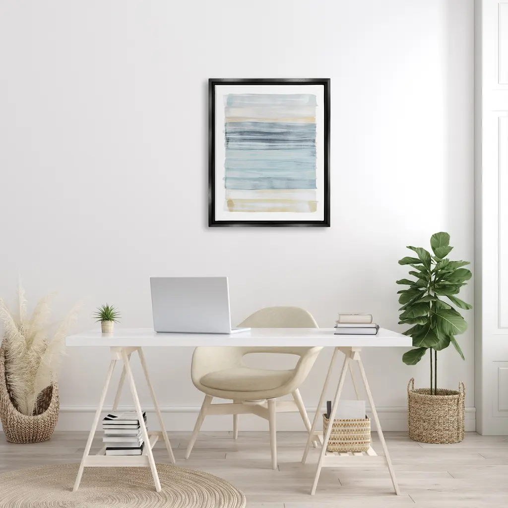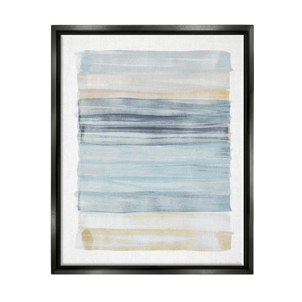 Stupell Tranquil Blue Beige Stripes Pattern Casual Painting Floater Frame - 24 X 30 - Black