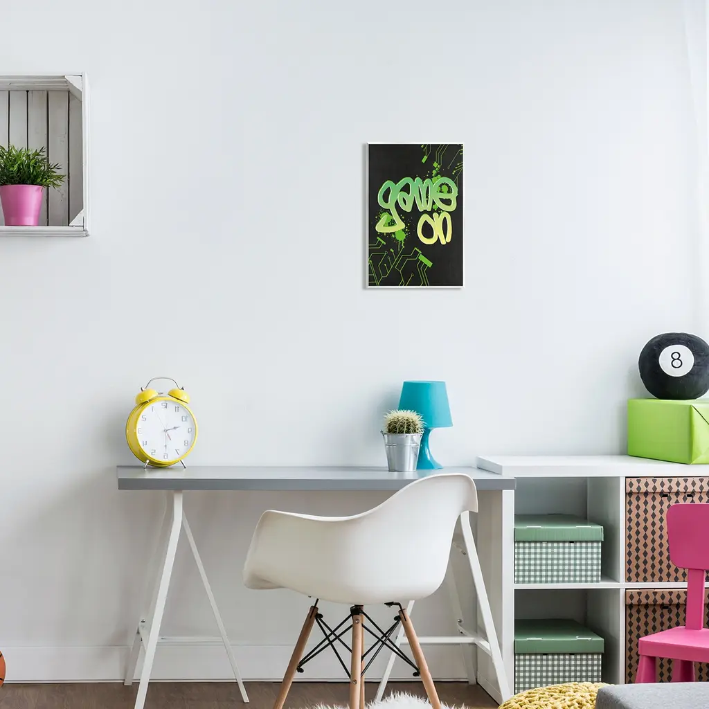 Our wall plaques start as high-quality lithograph prints mounted on durable 0.5-inch thick MDF wood. Each piece is hand finished and comes with a fresh layer of white foil on the sides to give it a crisp, clean look. Plaques arrive ready to hang without installation and come with removable plastic corners to keep them from damage in transit. Wall Art is made in the USA.Features: Dimensions: 10 x 0.5 x 15 InchesWall Plaque Sizes Include Standard: 10 x 0.5 x 15 Oversized: 13 x 0.5 x 19Wall Art is Ready to Hang with Hardware Free Hanging. No installation required. For Easy Set Up Lean or Layer Artwork on Shelf or Against Wall.All of our wall plaques start off as high quality lithograph prints that are then mounted on durable 0.5 inch thick MDF wood. Each piece is hand finished and comes with a fresh layer of foil on the sides to give it a crisp clean look. Made In USA.Artwork Relates To: Video games, Gaming, Gamer, Entertainment, Vintage, Game OnDesign by Amanda Murray
