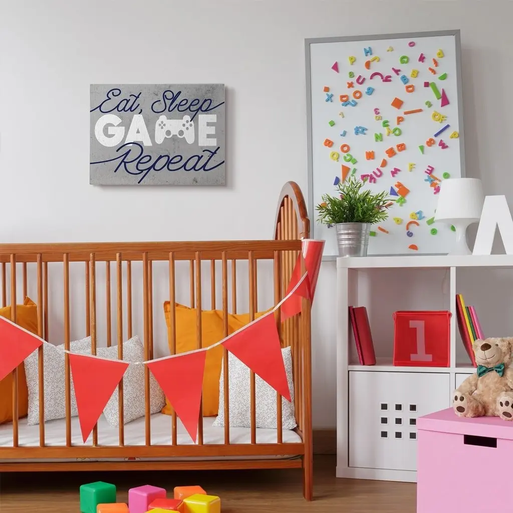 Stupell Video Game Controller Eat Sleep Game Repeat Quote Canvas Wall Art - Blue - 16 X 20