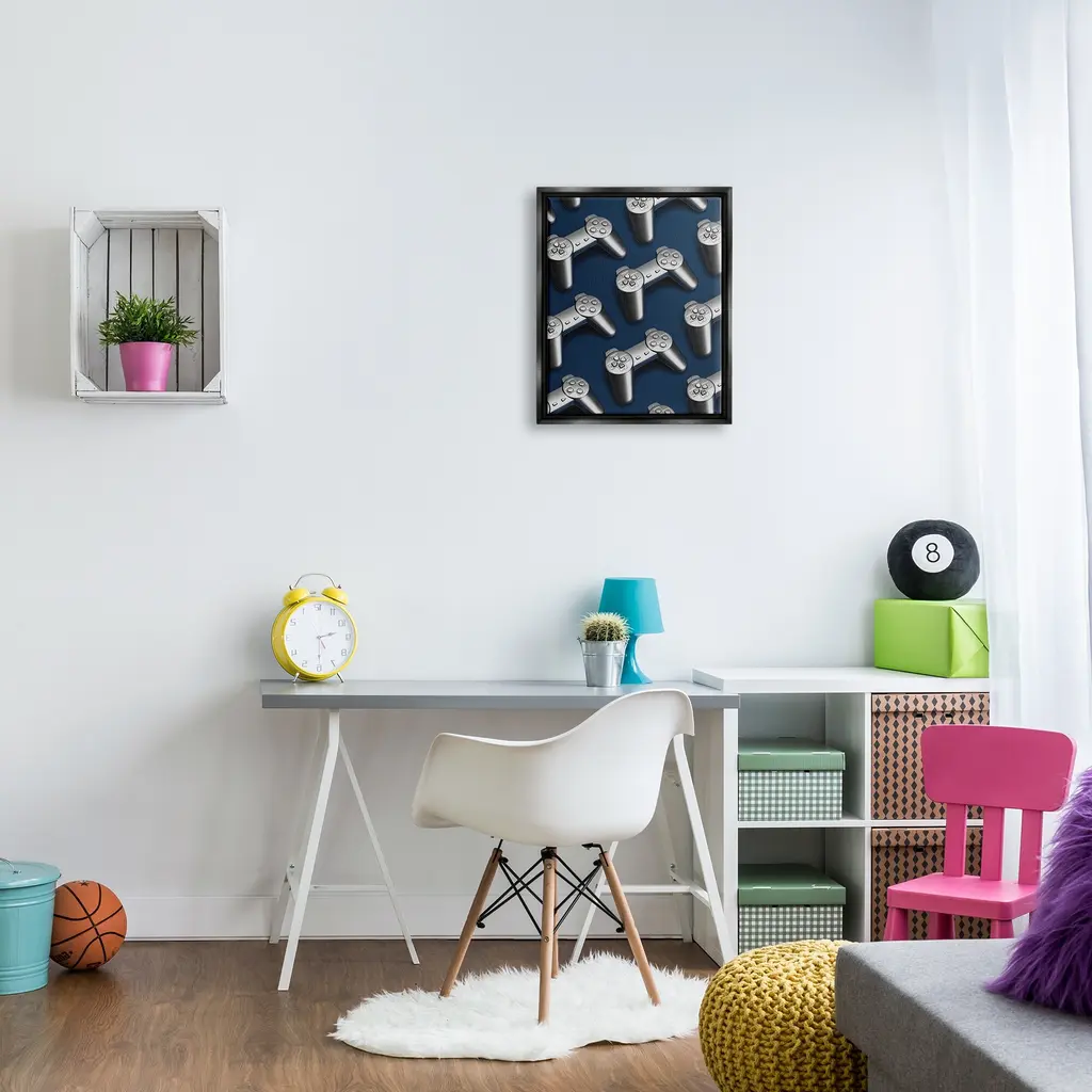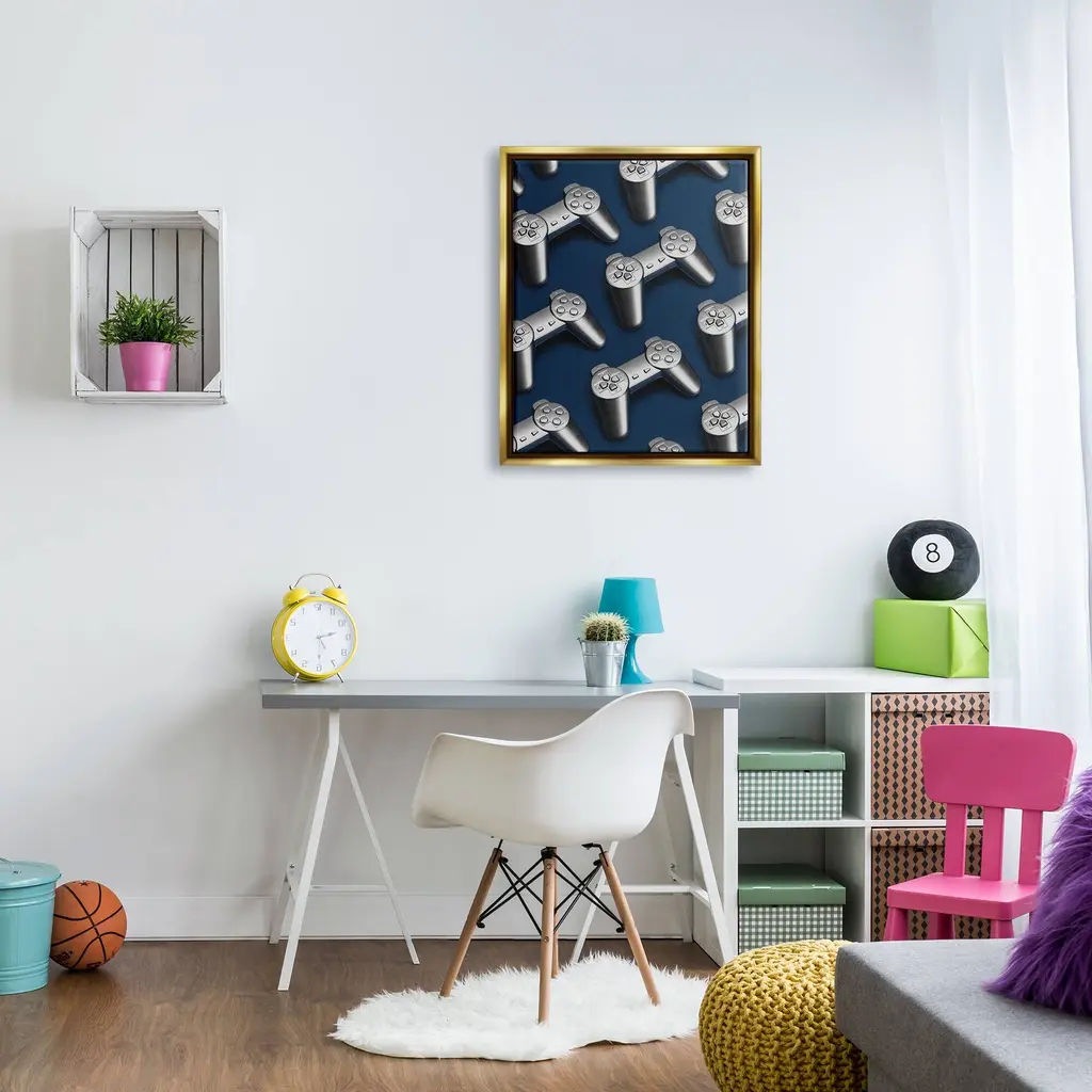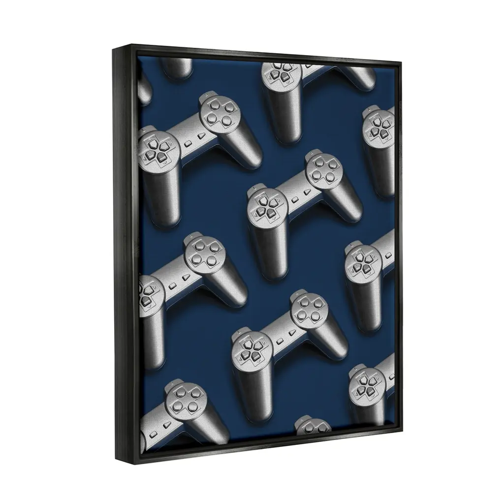 Elevate your home or office to the next level with Stupell Framed Floating Canvas Wall Art. Our premium hand-stretched canvas is mounted securely into a sturdy lightweight frame. The museum-style gap between the wrapped canvas and the box frame gives the illusion of floating artwork. Stupell Wall Art is made in the USA.Features: Dimensions: 17 x 1.7 x 21 Frame, 16 x 1.5 x 20 Canvas ArtFloating Frame Sizes Include Standard: 17 x 1.7 x 21 Oversized: 25 x 1.7 x 31Wall Art is Ready to Hang - No Installation or Hardware Needed. For Easy Set Up Lean or Layer Artwork on Shelf or Against Wall.Our elevated 1.7" Thick Floating Frame is the perfect complement to our canvas style Wall Art. We use only the highest quality inks in house with industry leading printing solutions. Canvas is hand stretched over a durable wood foundation and then mounted securly into a Modern Box Frame. Made in the USA.Artwork Relates To: Electronics, Gaming, Video Game, Entertainment, ControllerDesign by Lil' Rue