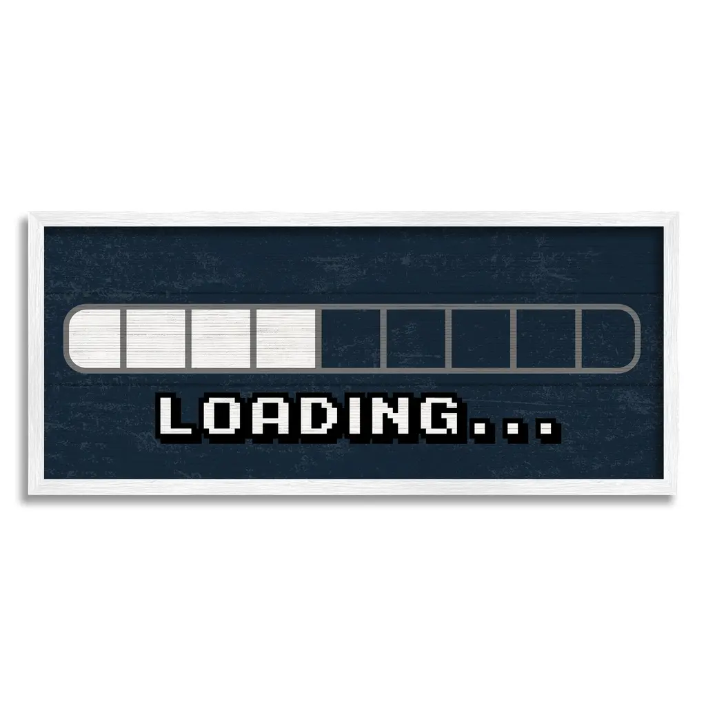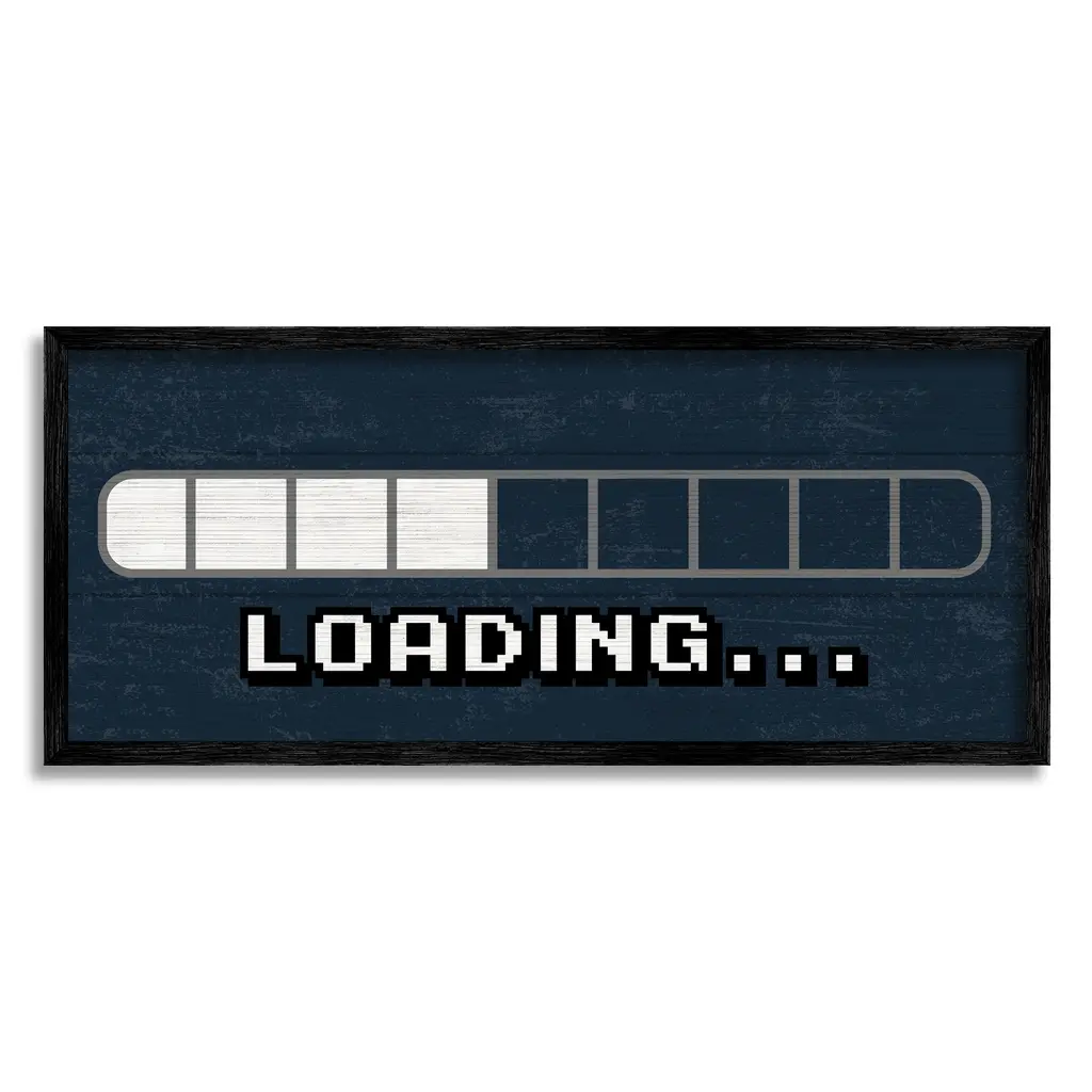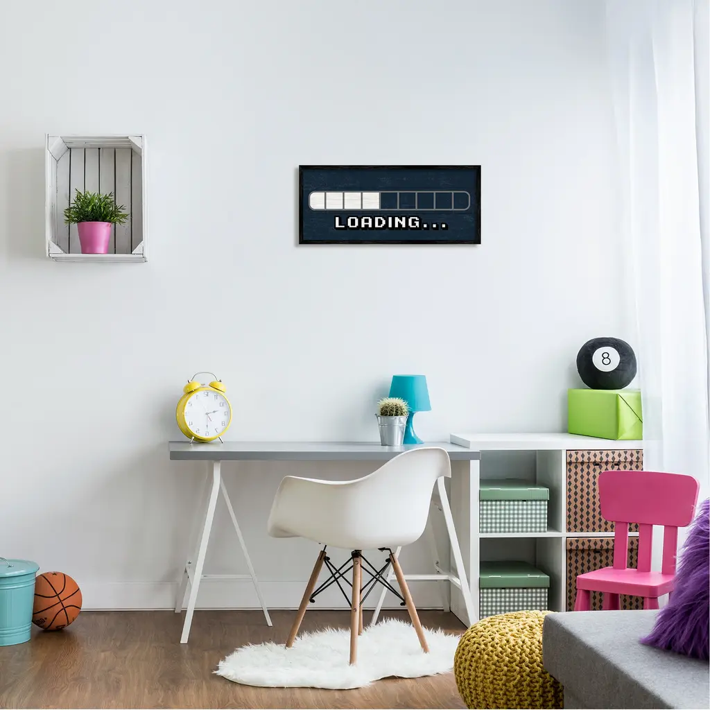 Stupell Video Game Loading Symbol Vintage Pixel Text Framed Wall Art - Blue - 24 X 10 - Black