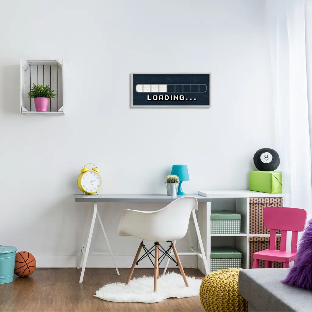 Stupell Video Game Loading Symbol Vintage Pixel Text Framed Wall Art - Blue - 24 X 10 - Grey