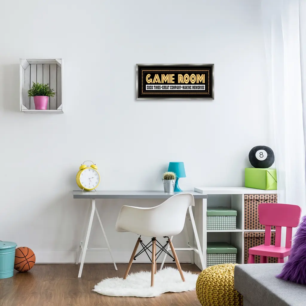 Elevate your home or office to the next level with Stupell Framed Floating Canvas Wall Art. Our premium hand-stretched canvas is mounted securely into a sturdy lightweight frame. The museum-style gap between the wrapped canvas and the box frame gives the illusion of floating artwork. Stupell Wall Art is made in the USA.Features: Dimensions: 25 x 1.7 x 11 Frame, 24 x 1.5 x 10 Canvas ArtFloating Frame Canvas Products are available in sizes 25"x11" and 31"x14". All Floating Frame Canvas Products have a 1.7" Depth.Wall Art is Ready to Hang with Hardware Free Hanging. No Installation required. For Easy Set Up Lean or Layer Artwork on Shelf or Against Wall. Artwork is Permently Fixed into the Frame.Our elevated 1.7" Thick Floating Frame is the perfect complement to our canvas style Wall Art. We use only the highest quality inks in house with industry leading printing solutions. Canvas is hand stretched over a durable wood foundation and then mounted securly into a Modern Box Frame. Made in the USA.Artwork Relates To: Sign, Game Room, Gaming, Arcade, Vintage, Video GameDesign by Cindy Jacobs