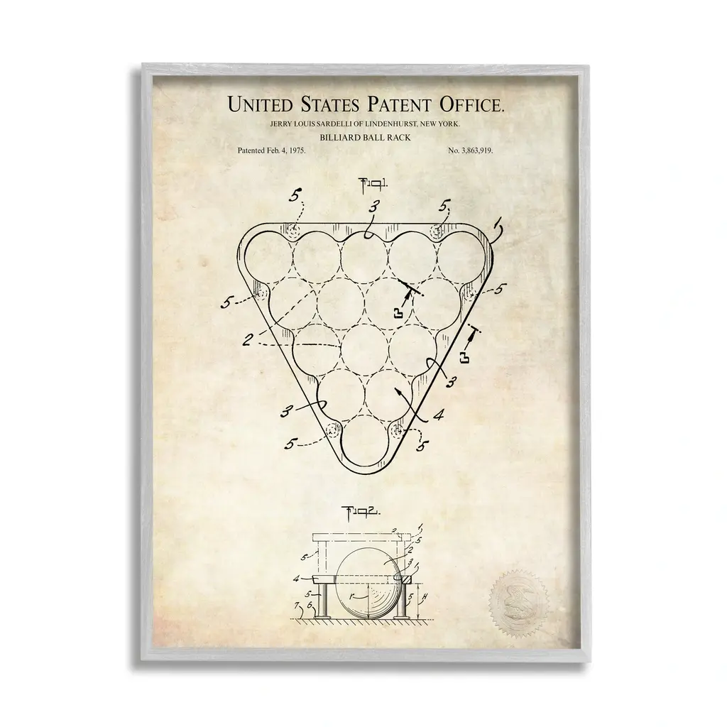 Stupell Vintage Billiards Pool Game Diagram Blueprint Design Framed Wall Art - Beige - 11 X 14 - Black