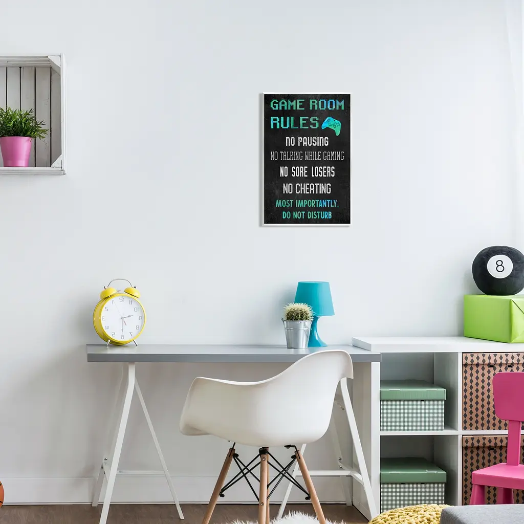 Our wall plaques start as high-quality lithograph prints mounted on durable 0.5-inch thick MDF wood. Each piece is hand finished and comes with a fresh layer of white foil on the sides to give it a crisp, clean look. Plaques arrive ready to hang without installation and come with removable plastic corners to keep them from damage in transit. Wall Art is made in the USA.Features: Dimensions: 10 x 0.5 x 15 InchesWall Plaque Sizes Include Standard: 10 x 0.5 x 15 Oversized: 13 x 0.5 x 19Wall Art is Ready to Hang with Hardware Free Hanging. No installation required. For Easy Set Up Lean or Layer Artwork on Shelf or Against Wall.All of our wall plaques start off as high quality lithograph prints that are then mounted on durable 0.5 inch thick MDF wood. Each piece is hand finished and comes with a fresh layer of foil on the sides to give it a crisp clean look. Made In USA.Artwork Relates To: Video games, Gaming, Gamer, Entertainment, Vintage, Gaming Room RulesDesign by CAD Design
