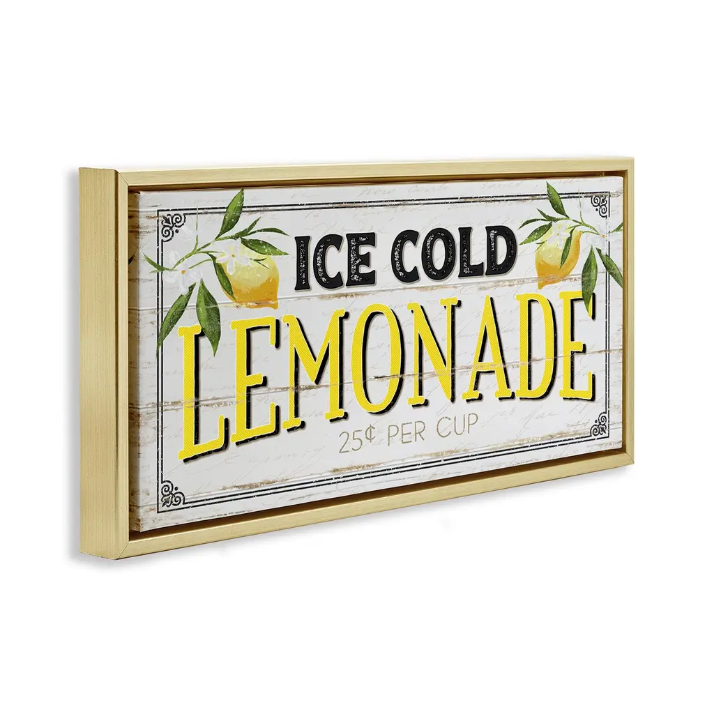 Stupell Vintage Lemonade Stand Sign Framed Floater Canvas Wall Art Design By Jennifer Pugh - 25 X 11 - Gold