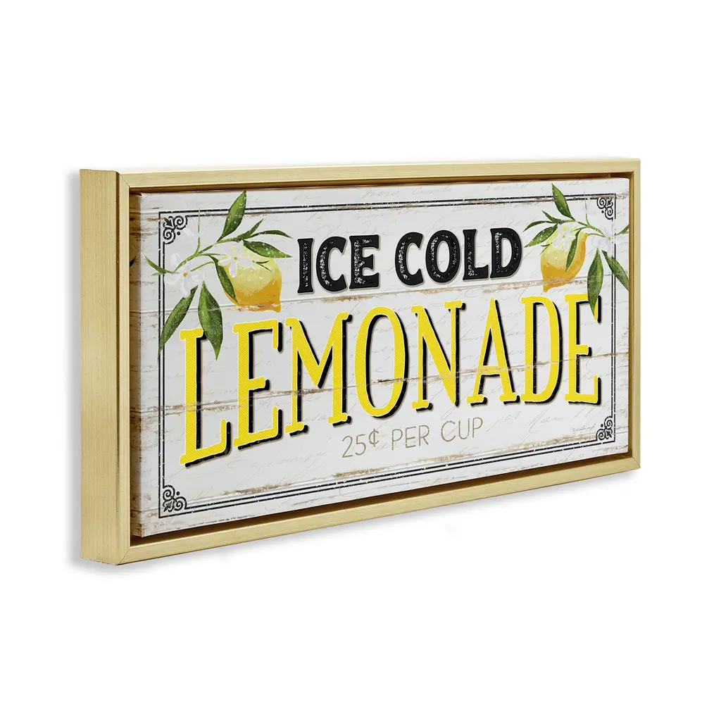 Stupell Vintage Lemonade Stand Sign Framed Floater Canvas Wall Art Design By Jennifer Pugh - 31 X 14 - Gold