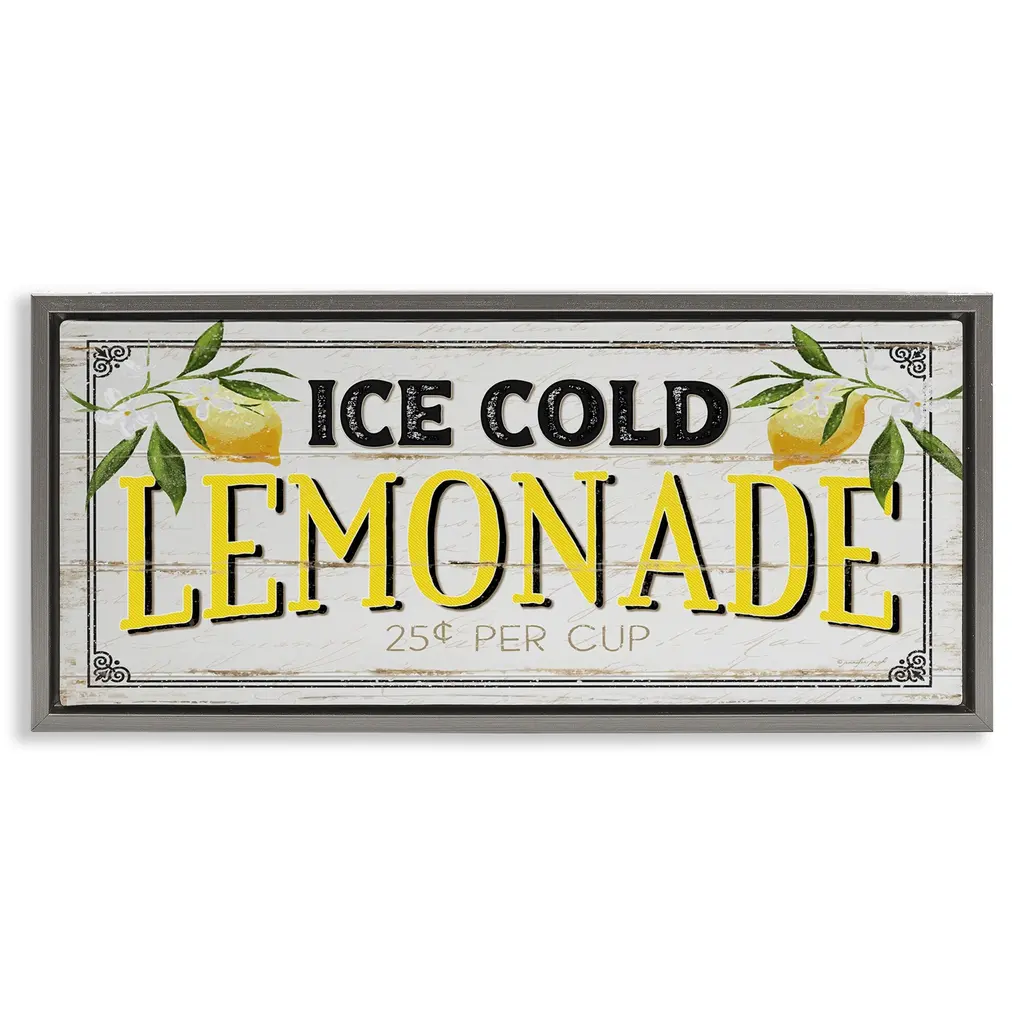 Elevate your home or office to the next level with Stupell Framed Floating Canvas Wall Art. Our premium hand-stretched canvas is mounted securely into a sturdy lightweight frame. The museum-style gap between the wrapped canvas and the box frame gives the illusion of floating artwork. Stupell Wall Art is made in the USA.Features: Dimensions: 25 x 1.7 x 11 Frame, 24 x 1.5 x 10 Canvas ArtFloating Frame Canvas Products are available in sizes 25"x11" and 31"x14". All Floating Frame Canvas Products have a 1.7" Depth.Wall Art is Ready to Hang with Hardware Free Hanging. No Installation required. For Easy Set Up Lean or Layer Artwork on Shelf or Against Wall. Artwork is Permently Fixed into the Frame.Our elevated 1.7" Thick Floating Frame is the perfect complement to our canvas style Wall Art. We use only the highest quality inks in house with industry leading printing solutions. Canvas is hand stretched over a durable wood foundation and then mounted securly into a Modern Box Frame. Made in the USA.Artwork Relates To: Kitchen, Phrase, Lemon, Humor, Country, Lemonade, RusticDesign by Jennifer Pugh