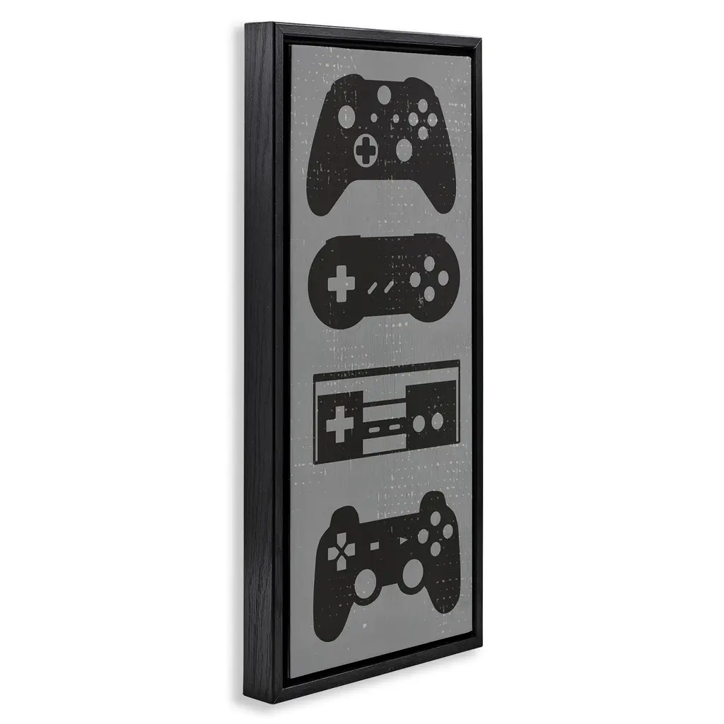 Elevate your home or office to the next level with Stupell Framed Floating Canvas Wall Art. Our premium hand-stretched canvas is mounted securely into a sturdy lightweight frame. The museum-style gap between the wrapped canvas and the box frame gives the illusion of floating artwork. Stupell Wall Art is made in the USA.Features: Dimensions: 11 x 1.7 x 25 Frame, 10 x 1.5 x 24 Canvas ArtFloating Frame Canvas Products are available in sizes 11"x25" and 14"x31". All Floating Frame Canvas Products have a 1.7" Depth.Wall Art is Ready to Hang with Hardware Free Hanging. No Installation required. For Easy Set Up Lean or Layer Artwork on Shelf or Against Wall. Artwork is Permently Fixed into the Frame.Our elevated 1.7" Thick Floating Frame is the perfect complement to our canvas style Wall Art. We use only the highest quality inks in house with industry leading printing solutions. Canvas is hand stretched over a durable wood foundation and then mounted securly into a Modern Box Frame. Made in the USA.Artwork Relates To: Video Games, Gaming, Gamer, Controller, Vintage, RusticDesign by Daphne Polselli