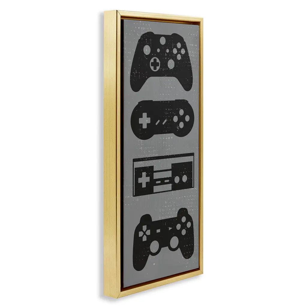 Elevate your home or office to the next level with Stupell Framed Floating Canvas Wall Art. Our premium hand-stretched canvas is mounted securely into a sturdy lightweight frame. The museum-style gap between the wrapped canvas and the box frame gives the illusion of floating artwork. Stupell Wall Art is made in the USA.Features: Dimensions: 11 x 1.7 x 25 Frame, 10 x 1.5 x 24 Canvas ArtFloating Frame Canvas Products are available in sizes 11"x25" and 14"x31". All Floating Frame Canvas Products have a 1.7" Depth.Wall Art is Ready to Hang with Hardware Free Hanging. No Installation required. For Easy Set Up Lean or Layer Artwork on Shelf or Against Wall. Artwork is Permently Fixed into the Frame.Our elevated 1.7" Thick Floating Frame is the perfect complement to our canvas style Wall Art. We use only the highest quality inks in house with industry leading printing solutions. Canvas is hand stretched over a durable wood foundation and then mounted securly into a Modern Box Frame. Made in the USA.Artwork Relates To: Video Games, Gaming, Gamer, Controller, Vintage, RusticDesign by Daphne Polselli