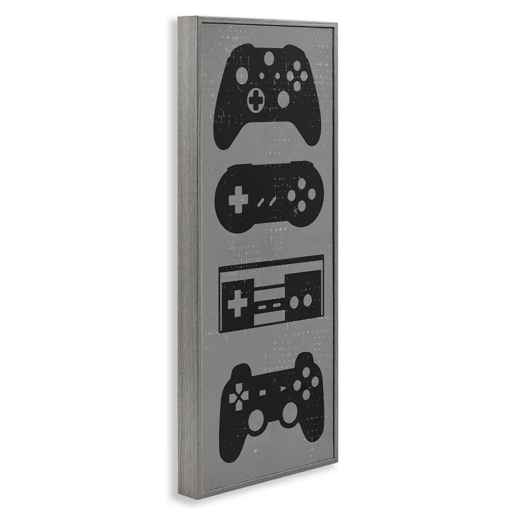 Add dimension to any room with our textured Framed Giclee Artwork. Our framed artwork is securely mounted into a 1.5-inch thick wood grain frame and ready to hang. Frames are available in three alluring styles: black, gray farmhouse and white. In addition, you should check out our oversized options if you want a statement piece. Stupell Wall Art is made in the USA.Features: Dimensions: 10 x 1.5 x 24 FramedFramed Giclee Product Sizes include 10"x24" and 13"x30". All Framed Giclee products have a 1.5" Depth.Wall Art is Ready to Hang with Hardware Free Hanging. No installation required. For Easy Set Up Lean or Layer Artwork on Shelf or Against Wall.Our giclée prints are carefully mounted on a durable MDF backing, and then perfectly finished in a 1.5 inch thick woodgrain frame. Mounted frame colors include black, gray farmhouse and white. Made In USA.Artwork Relates To: Video Games, Gaming, Gamer, Controller, Vintage, RusticDesign by Daphne Polselli