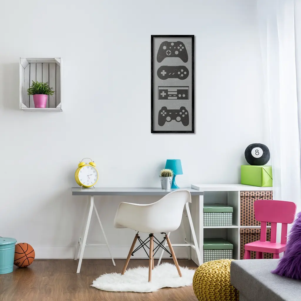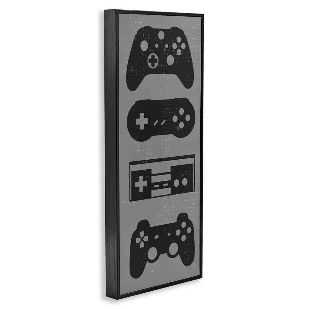 Add dimension to any room with our textured Framed Giclee Artwork. Our framed artwork is securely mounted into a 1.5-inch thick wood grain frame and ready to hang. Frames are available in three alluring styles: black, gray farmhouse and white. In addition, you should check out our oversized options if you want a statement piece. Stupell Wall Art is made in the USA.Features: Dimensions: 10 x 1.5 x 24 FramedFramed Giclee Product Sizes include 10"x24" and 13"x30". All Framed Giclee products have a 1.5" Depth.Wall Art is Ready to Hang with Hardware Free Hanging. No installation required. For Easy Set Up Lean or Layer Artwork on Shelf or Against Wall.Our giclée prints are carefully mounted on a durable MDF backing, and then perfectly finished in a 1.5 inch thick woodgrain frame. Mounted frame colors include black, gray farmhouse and white. Made In USA.Artwork Relates To: Video Games, Gaming, Gamer, Controller, Vintage, RusticDesign by Daphne Polselli