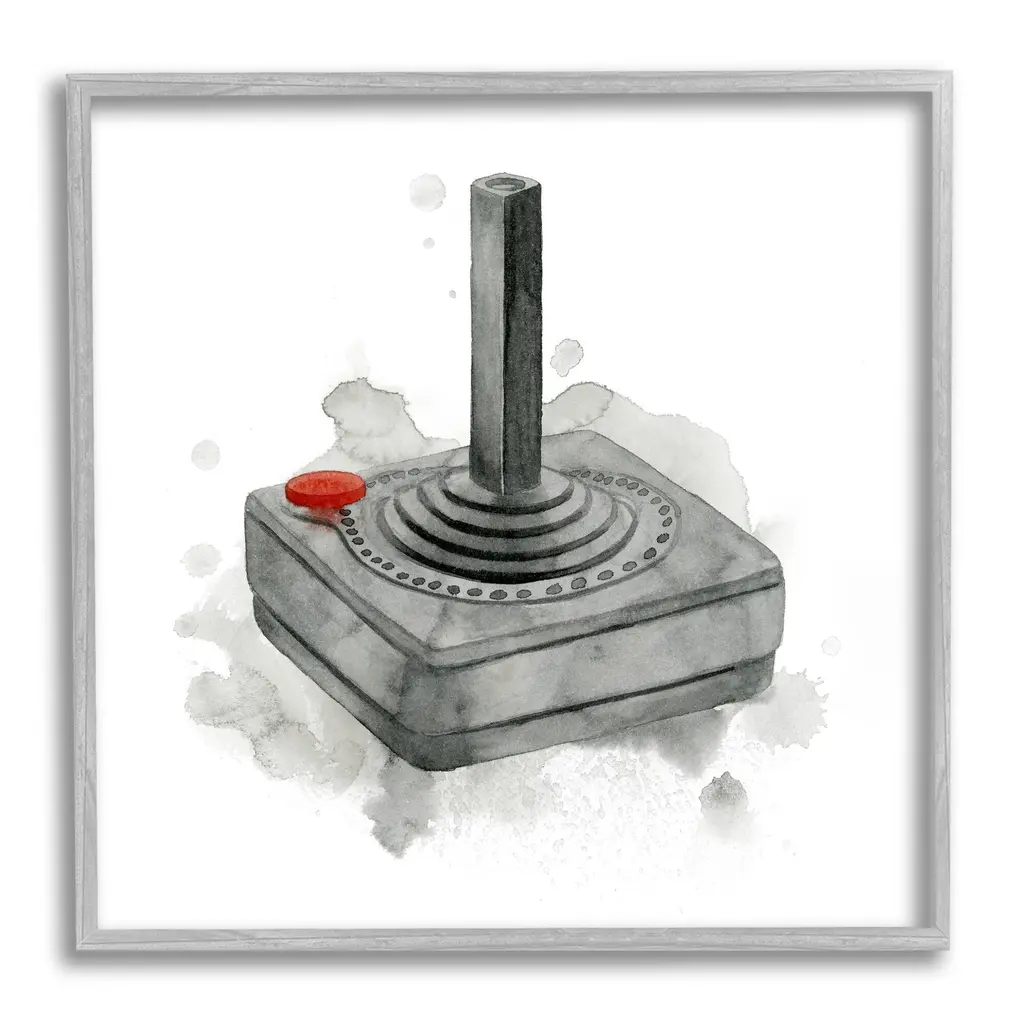 Add dimension to any room with our textured Framed Giclee Artwork. Our framed artwork is securely mounted into a 1.5-inch thick wood grain frame and ready to hang. Frames are available in three alluring styles: black, gray farmhouse and white. In addition, you should check out our oversized options if you want a statement piece. Stupell Wall Art is made in the USA.Features: Dimensions: 12 x 1.5 x 12 FramedFramed Giclee Sizes Include Standard: 12 x 1.5 x 12 Large: 17 x 1.5 x 17 Oversized: 24 x 1.5 x 24Wall Art is Ready to Hang - No Installation or Hardware Needed. For Easy Set Up Lean or Layer Artwork on Shelf or Against Wall.Our giclée prints are carefully mounted on a durable MDF backing, and then perfectly finished in a 1.5 inch thick woodgrain frame. Mounted frame colors include black, gray farmhouse and white. Made In USA.Artwork Relates To: Electronics, Joystick, Gaming, Video Game, Entertainment, AtariDesign by Grace Popp