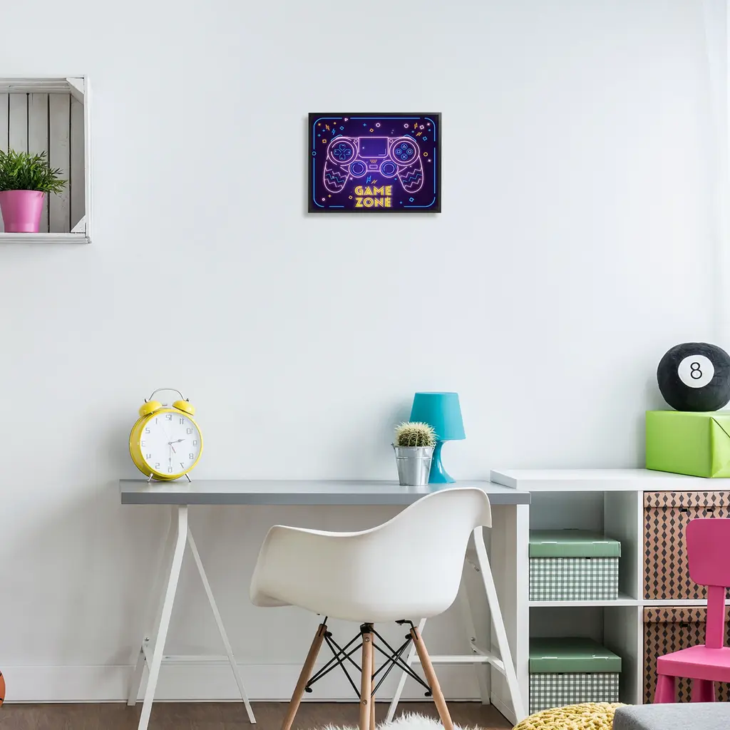 Stupell Vivid Neon Style Game Zone Arcade Gamer Sign Framed Wall Art - Pink - 14 X 11 - Black