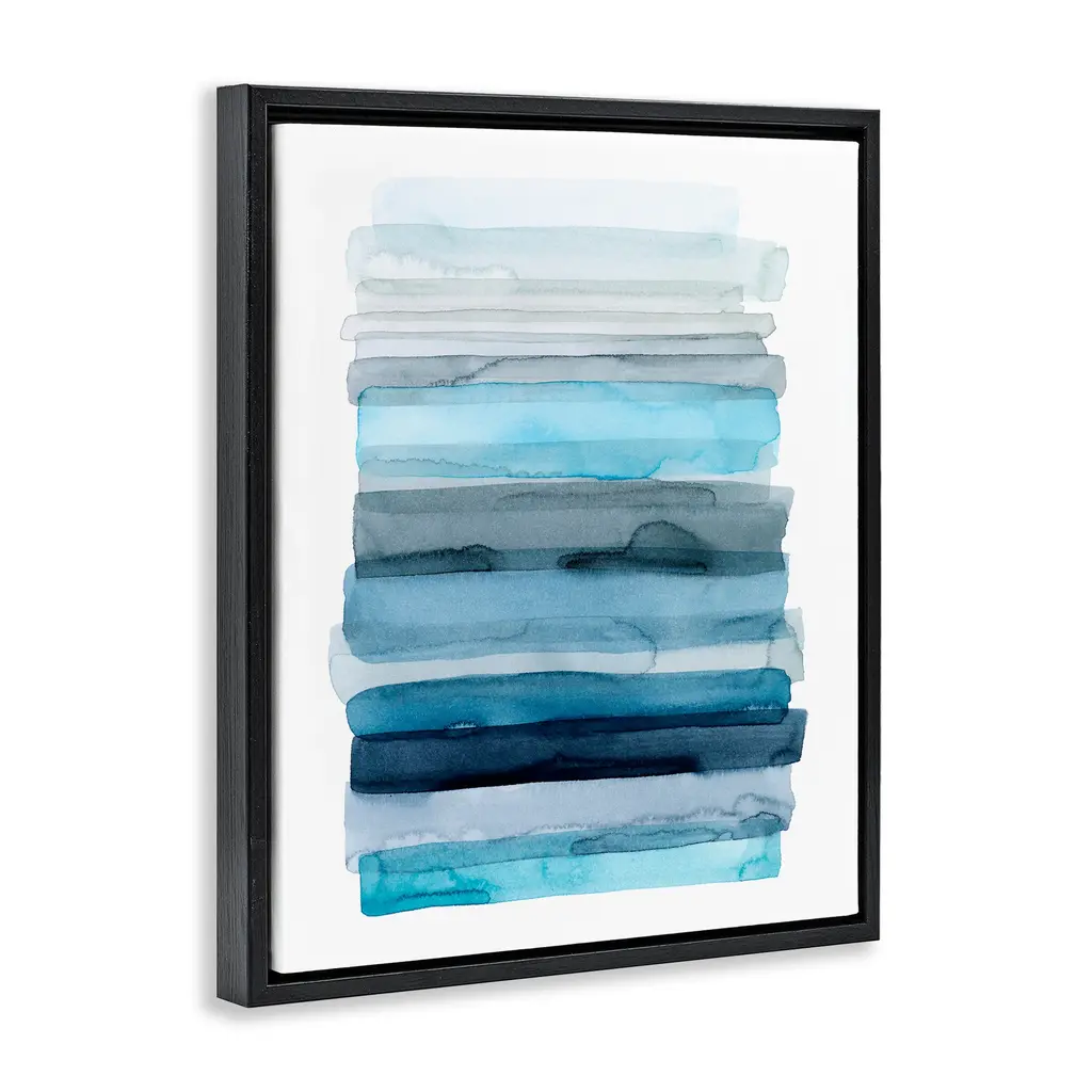 Stupell Water Inspired Blue Grey Ombre Abstract Lines Floater Frame - 25 X 31 - Black