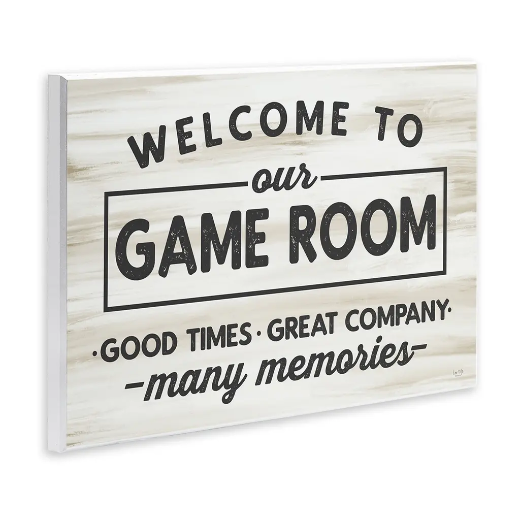 Our wall plaques start as high-quality lithograph prints mounted on durable 0.5-inch thick MDF wood. Each piece is hand finished and comes with a fresh layer of white foil on the sides to give it a crisp, clean look. Plaques arrive ready to hang without installation and come with removable plastic corners to keep them from damage in transit. Stupell Wall Art is made in the USA.Features: Dimensions: 15 x 0.5 x 10 InchesWall Plaque Sizes Include Standard: 15 x 0.5 x 10 Oversized: 19 x 0.5 x 13Wall Art is Ready to Hang with Hardware Free Hanging. No installation required. For Easy Set Up Lean or Layer Artwork on Shelf or Against Wall.All of our wall plaques start off as high quality lithograph prints that are then mounted on durable 0.5 inch thick MDF wood. Each piece is hand finished and comes with a fresh layer of foil on the sides to give it a crisp clean look. Made In USA.Artwork Relates To: Phrase, Sign, Game Room, Welcome, Good Times, Great Company, Many MemoriesDesign by Lux + Me Designs