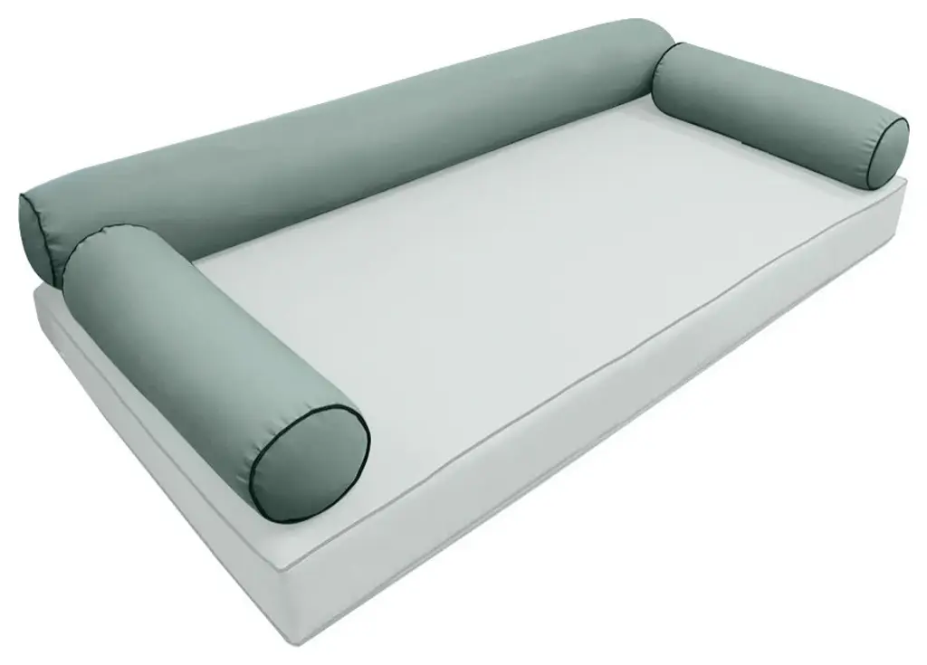 • Style-6 Twin-XL Size Contrast Pipe Trim Bolster Pillow Cover Set ONLY• • MATTRESS AND INSERTS NOT INCLUDED• • 2 x Bolster Pillow Cover Only:27" x 8"• 1 x Bolster Pillow Cover Only:78" x 8"• Color: AD002• Edge Trim: PipeEdge (contrast color)• Fabric: 230Gram Polyester Upholstery• Hidden Zipper• Water Repellent • Not Water Proof• • Tips:Please cover or store cushion pillow in rainy season• Cleaning:Soap clean and rinse off with water hose. Outdoor durable!• Quantity: 1