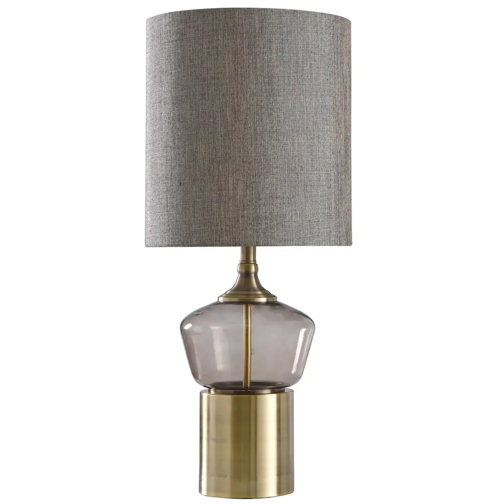 Stylecraft Bolt Silver - Grey Smoke Glass Table Lamp - Neutral Grey Shade - Grey Smoke, Dark Brass