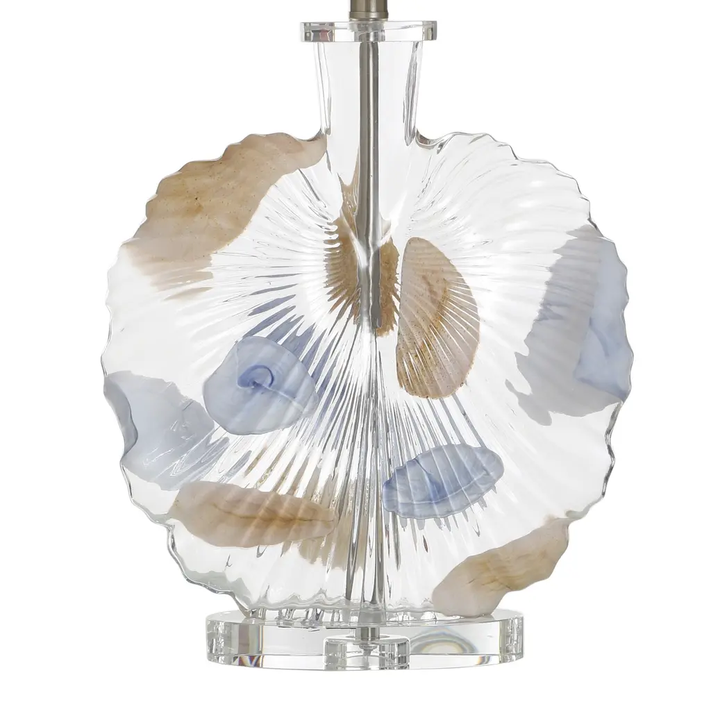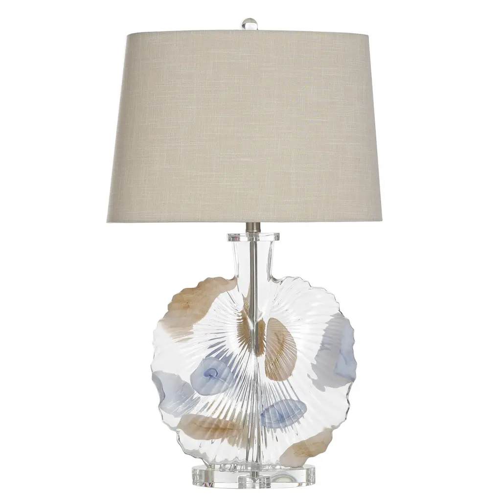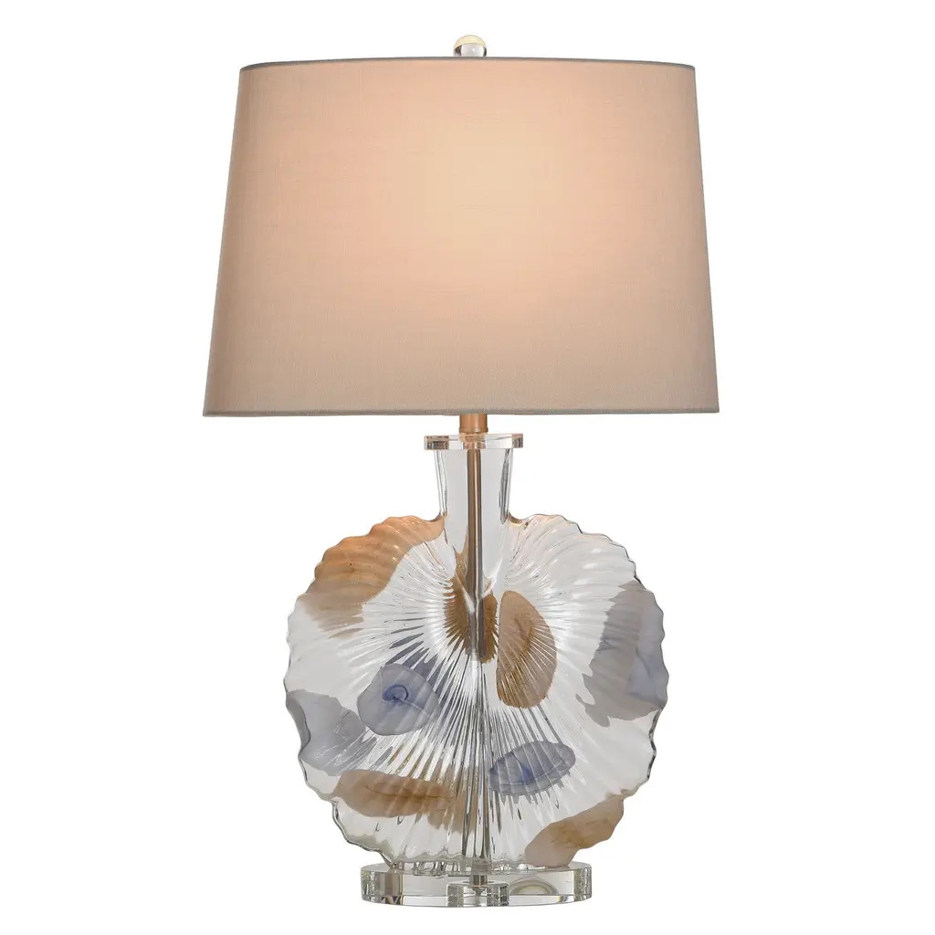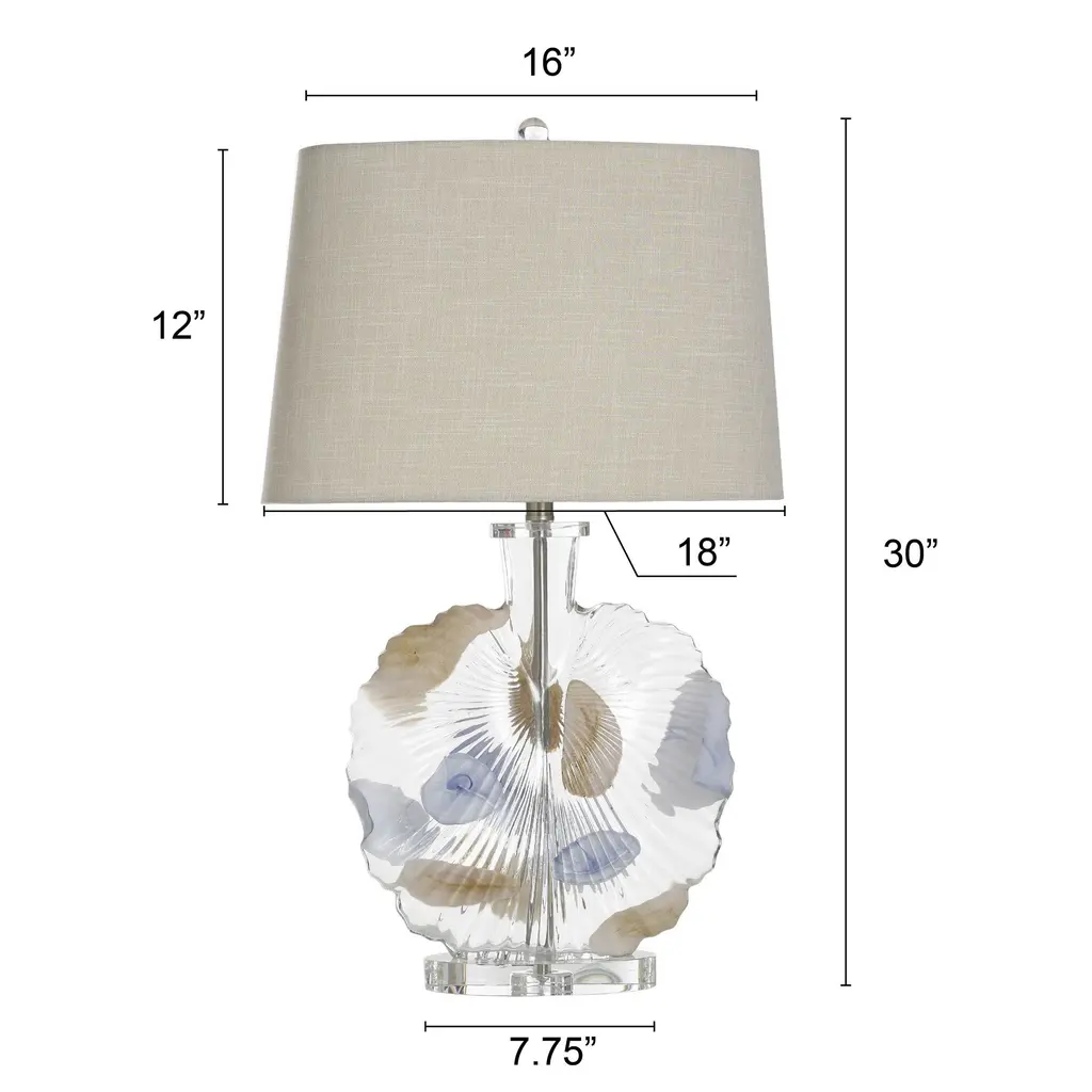 Stylecraft Lily - Fossil Glass Table Lamp With Solid Crystal Acrylic Base - Clear, Blue, Beige Finish - Grey Shade - Clear, Blue, Beige