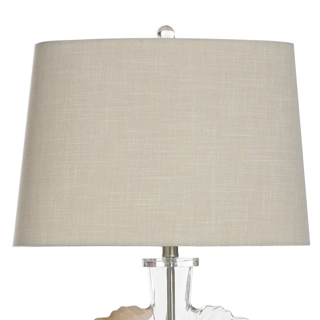 Upgrade your living room or bedroom with the Lily table lamp, a beautiful blend of fossil glass and crystal acrylic. The lamp's fabric shade is complemented by a meticulously ribbed texture adding an unmatched elegance to your styling. Impeccable for both office and entryway, this lamp creates a warm and inviting atmosphere.Due to the production process, each piece is unique and no two are exactly alike.Made from high-quality fossil glass and crystal acrylic for a long-lasting effectComes with a unique ribbed texture that adds elegance and charm to any roomPerfect lighting choice for the living room, bedroom, or officeFabric shade adds a soft, diffused light that's ideal for creating a cozy atmosphereTable lamp's elegant design blends seamlessly with various decor stylesMaterial: 60% Fossil Glass, 30% Fabric, 10% Crystal AcrylicWeight: 3.1 poundsSwitch Type: Rotary 3 WaySwitch Location: On SocketSystem Type: Plug-InSocket Quantity: 1Bulb Shape: A21Socket Type: E26Voltage: 120VFixture Dimmable: No