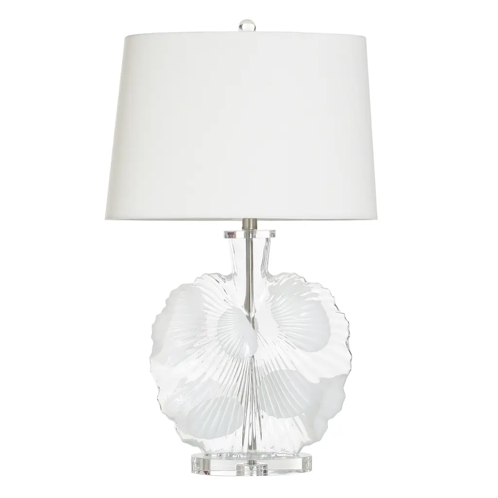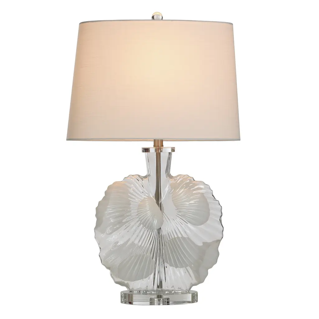 Stylecraft Lily - Fossil Glass Table Lamp With Solid Crystal Acrylic Base - Clear, White Finish - Off-White Shade - Clear, White